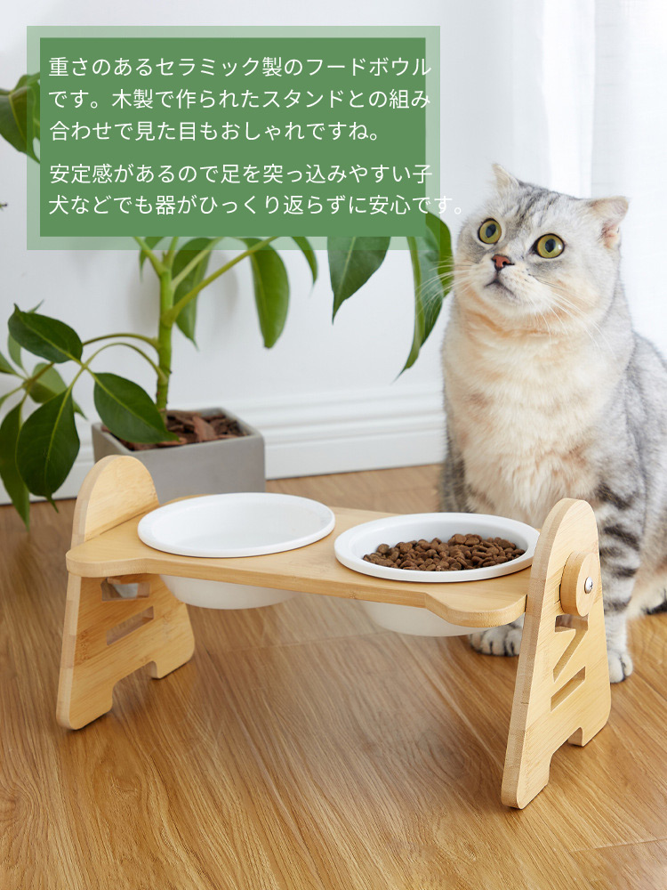 傾斜を付けて程よい高さにフードボウルを据えることで、 首や腰を大きく曲げずに食べることができ、 食事中の体の負担が軽減されます。素材 陶器 木製生産国 中国サイズ 高さ4段階高さ:6cm・8.5cm・10.5cm・13cmに調節が可能。セット内容 フードボウル 3連注意 PC環境・光の具合により、色や素材のイメージが写真と若干異なる場合がございます。