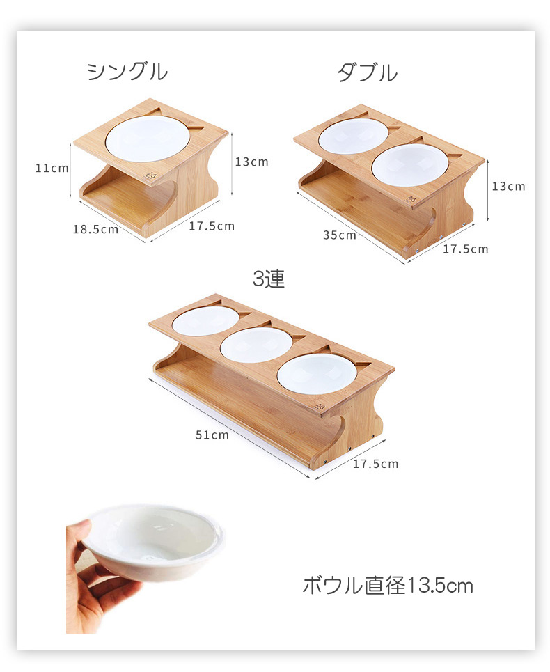 傾斜を付けて程よい高さにフードボウルを据えることで、 首や腰を大きく曲げずに食べることができ、 食事中の体の負担が軽減されます。素材 陶器 木製生産国 中国サイズ テーブル:長さ18.5x奥行17.5x高さ13cmセット内容 フードボウル シングル注意 PC環境・光の具合により、色や素材のイメージが写真と若干異なる場合がございます。