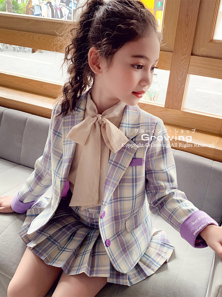 商品名 〈春秋〉子供服 入学式 チェック柄セットアップ 女の子 フォーマル