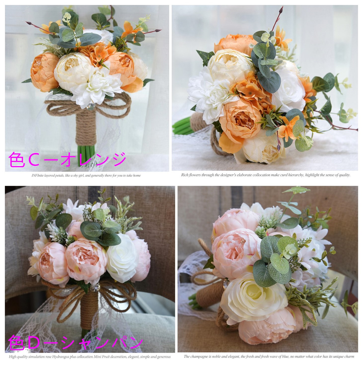 7色展開ウェディングブーケ 造花ブーケ