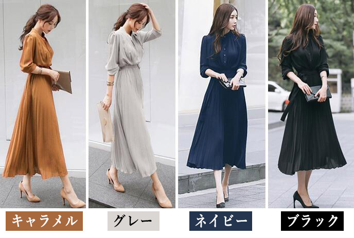 プリーツワンピースプリーツフリルワンピ
