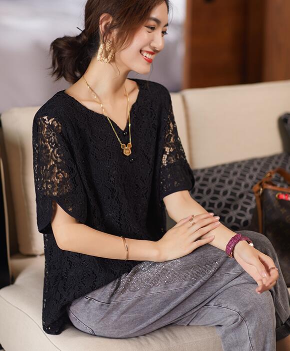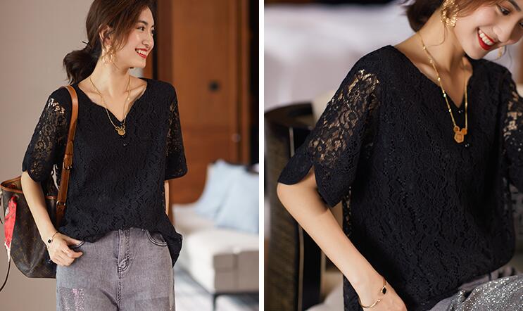 ブラウス レースブラウスVネック レー