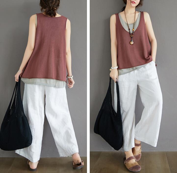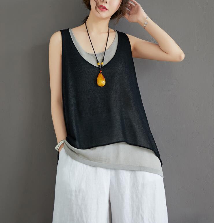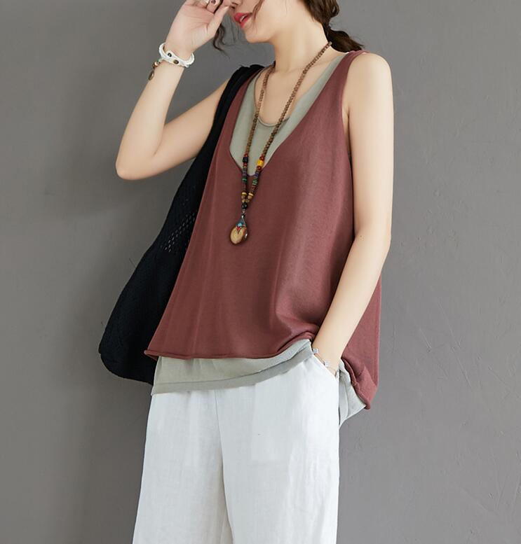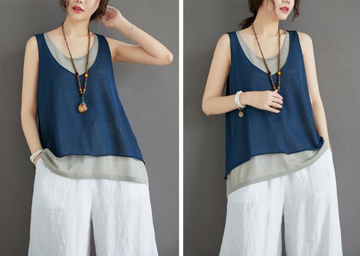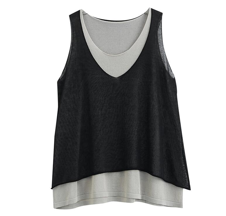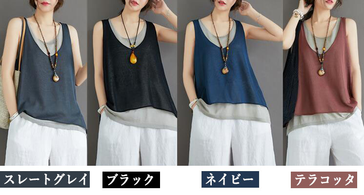 タンクトップ切り替え重ね着キャミソール