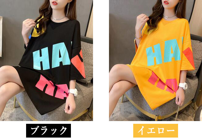 英文字TシャツオーバーサイズロングTシ