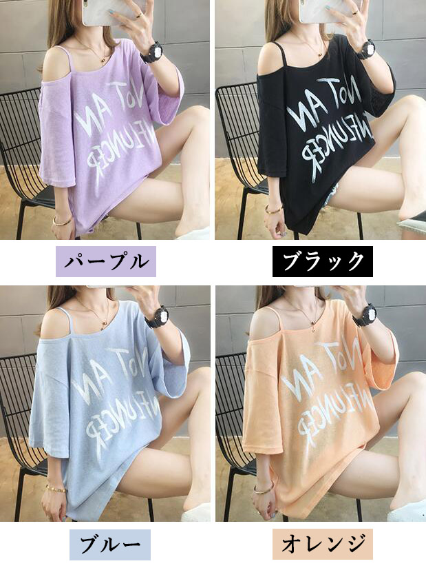 オフショルダー 肩だし 肌見せ ロゴT