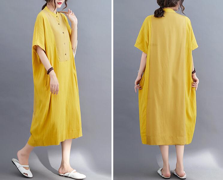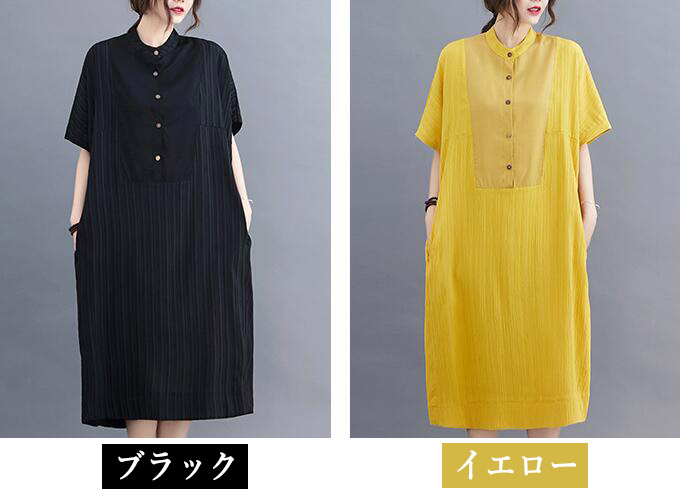 ワンピースロングワンピース綿麻風前後差