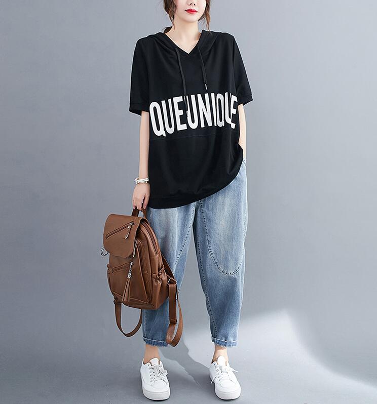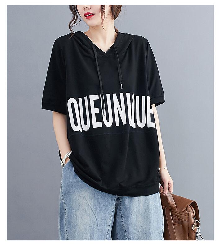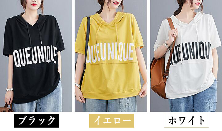Tシャツフード付きロゴTシャツ オーバ