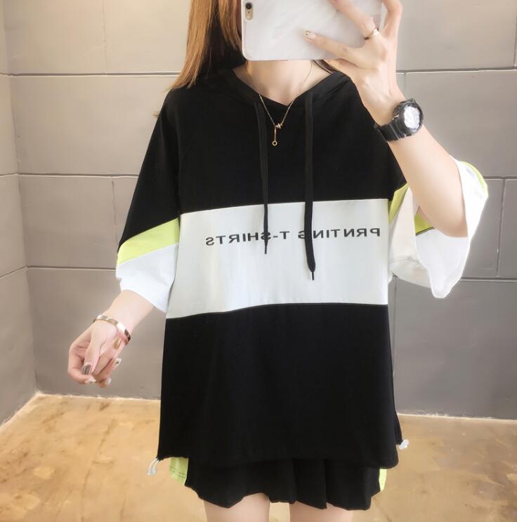 TシャツロゴTシャツフード付きオーバー