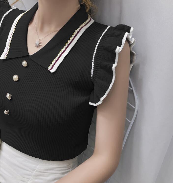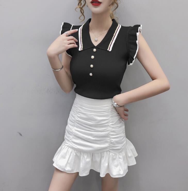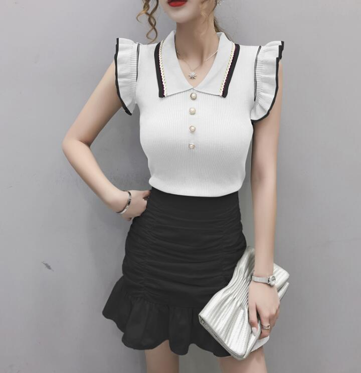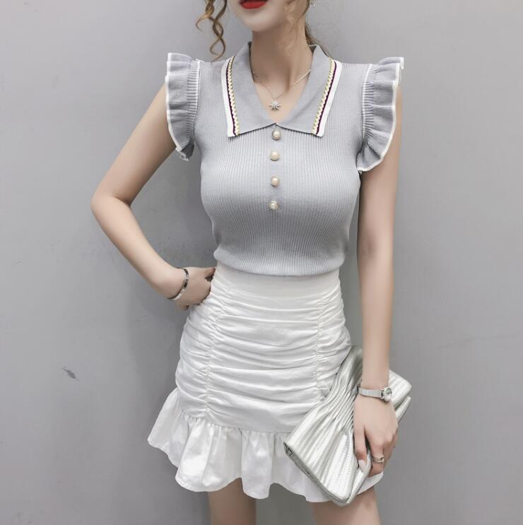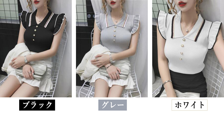 ノースリーブトップスフリルタイトニット