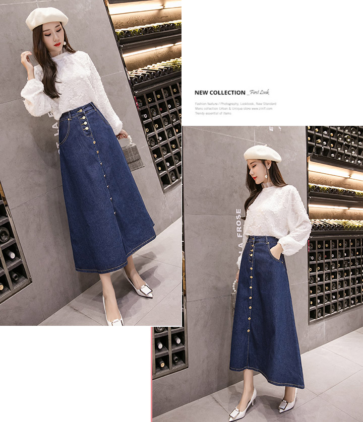 デニムスカートフレアスカートミモレ丈ス