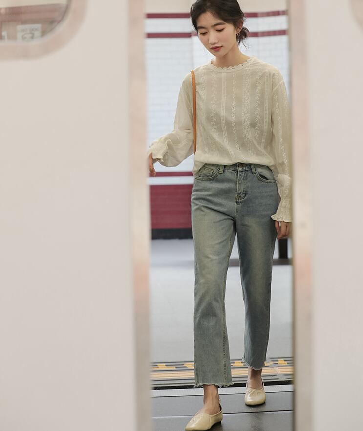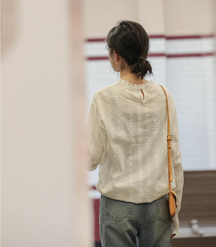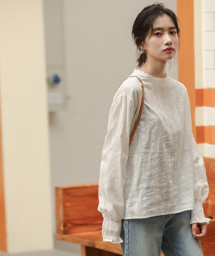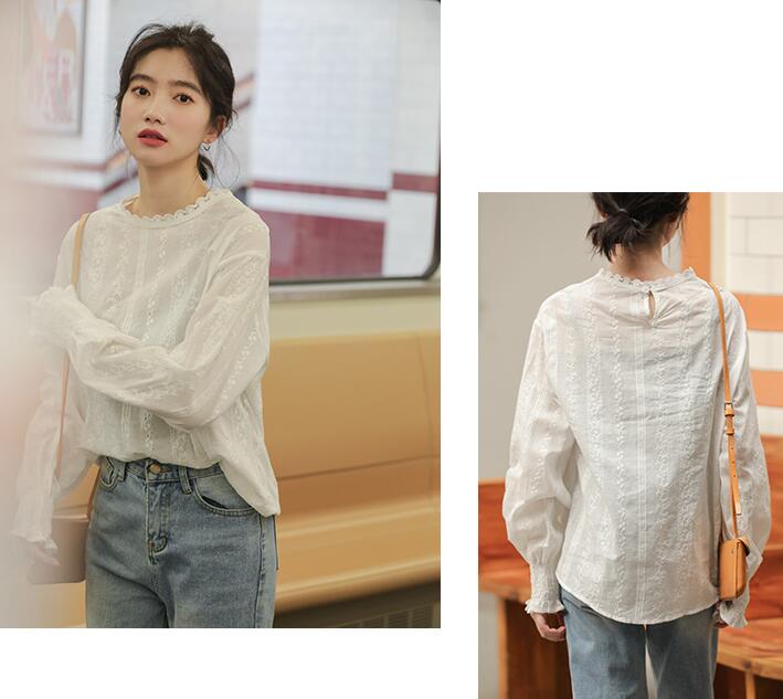 ブラウス レースブラウスフリルネック