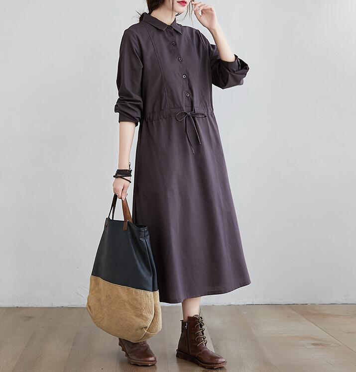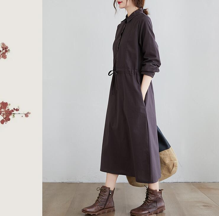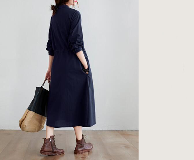 リネンワンピース ブラウジングロングワ