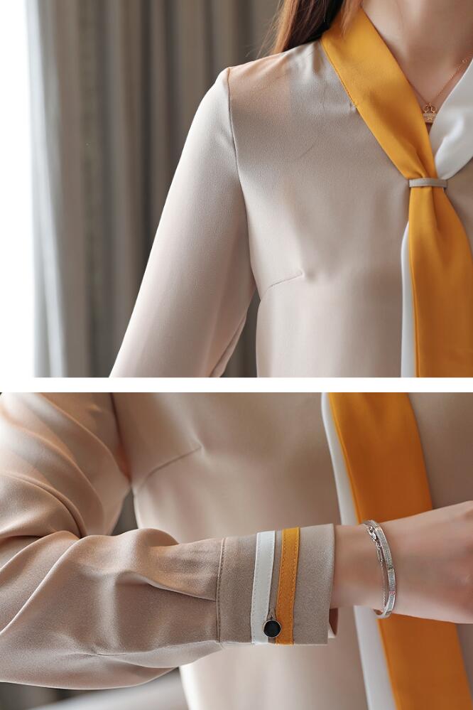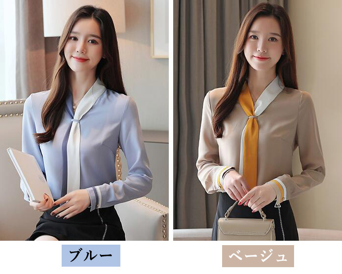 シアースリーブ ドッキングシャツ ボウタイシャツブラウス