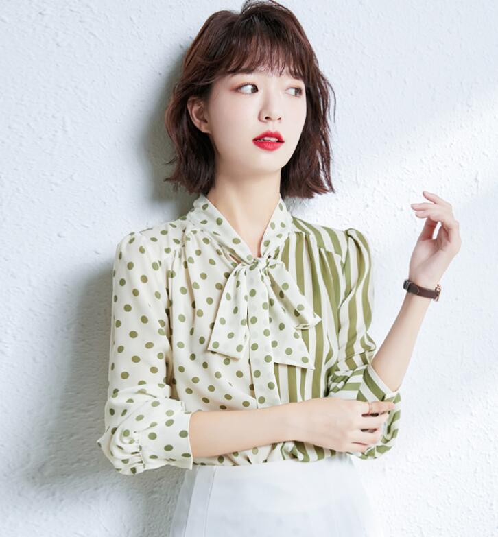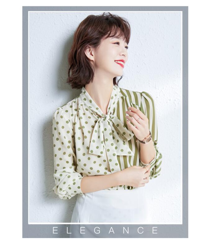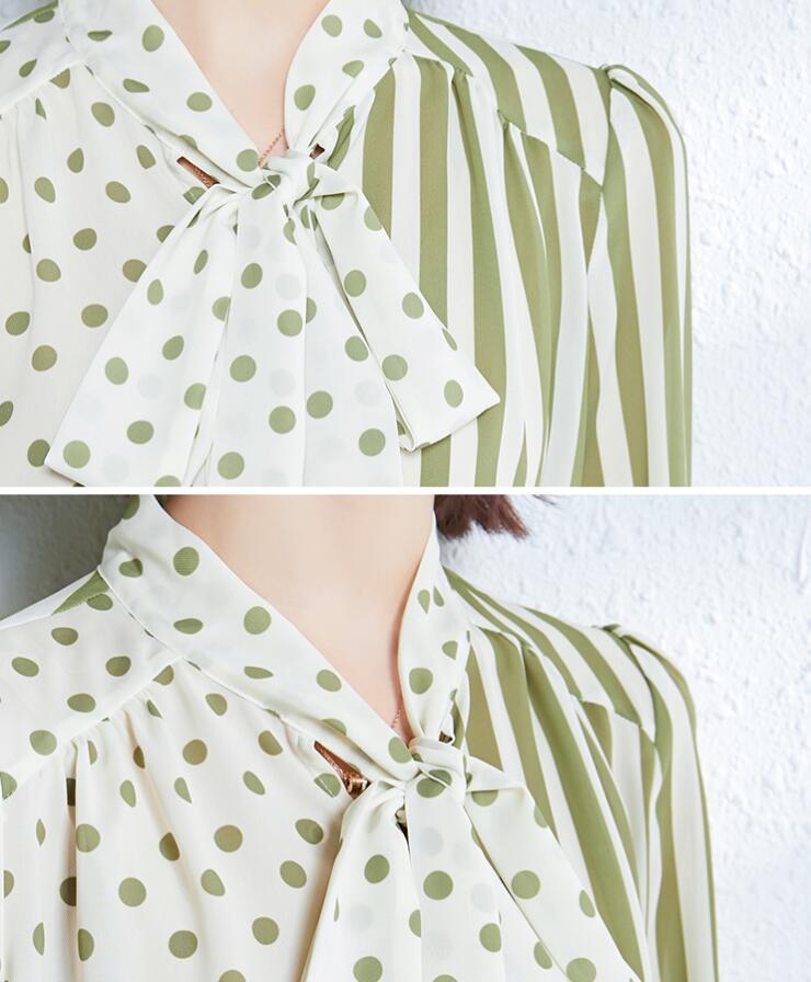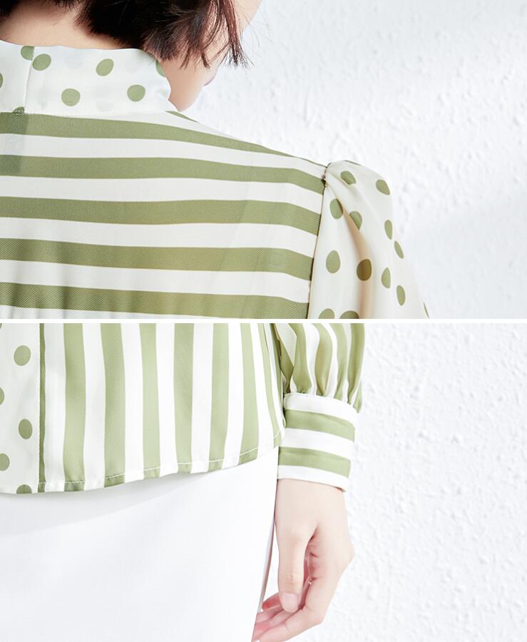 ボウタイブラウスドット水玉 ストライプ