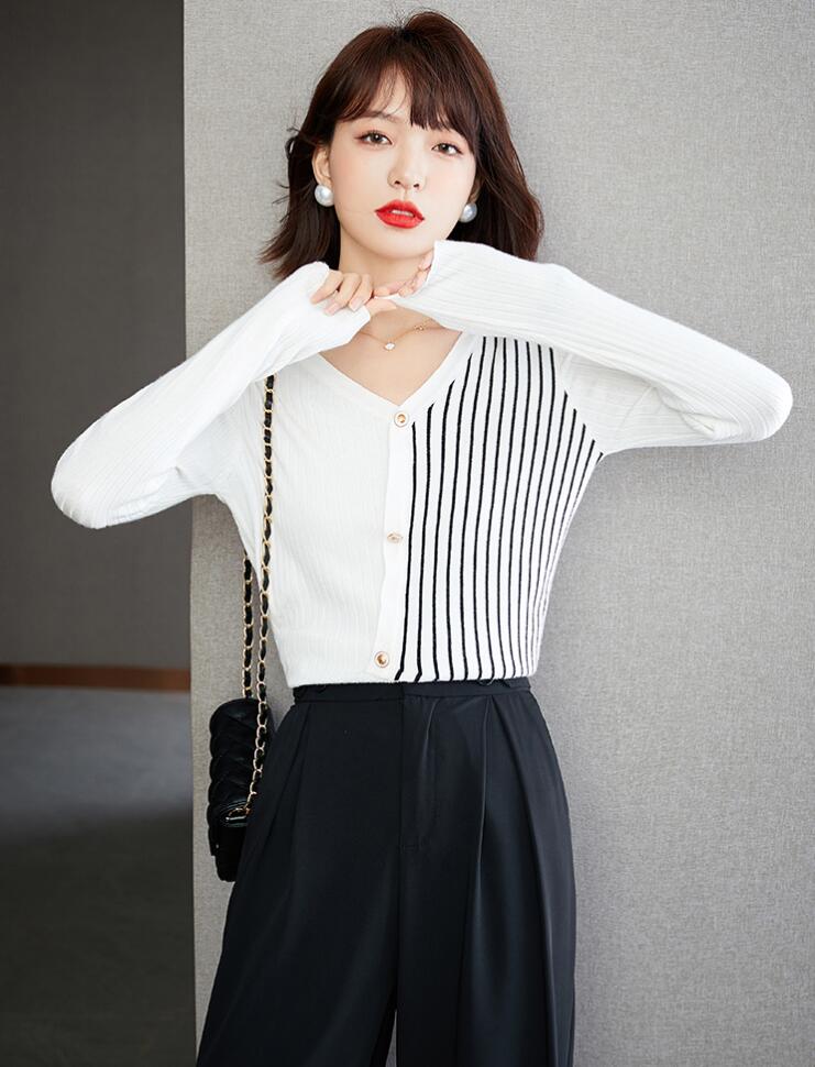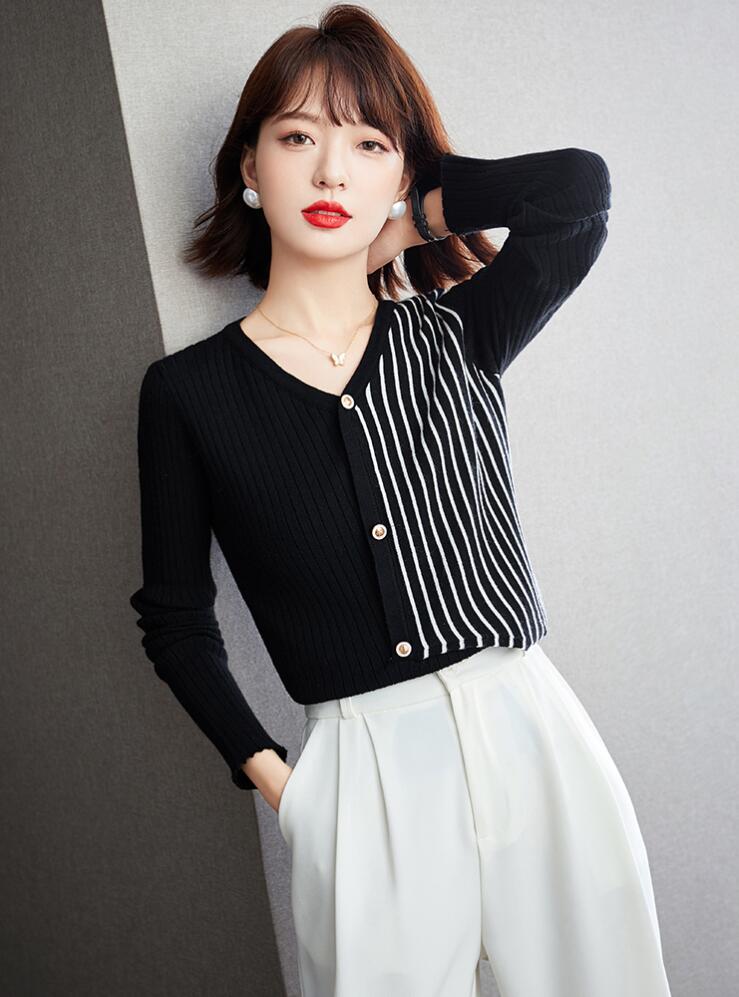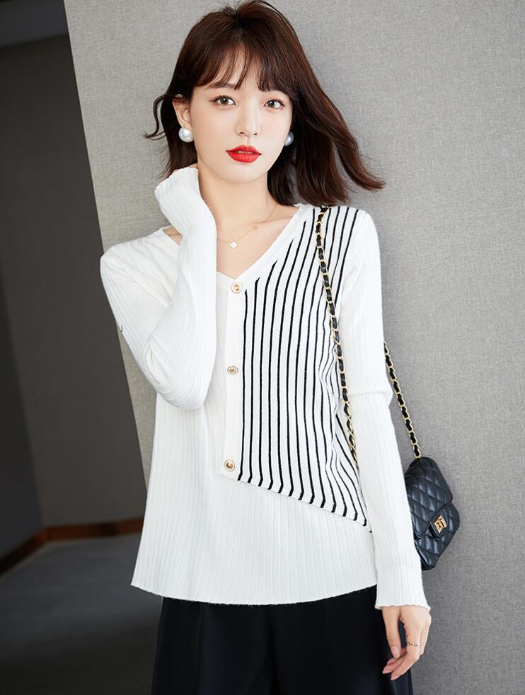 ニットセーターリブニットストライプタイ