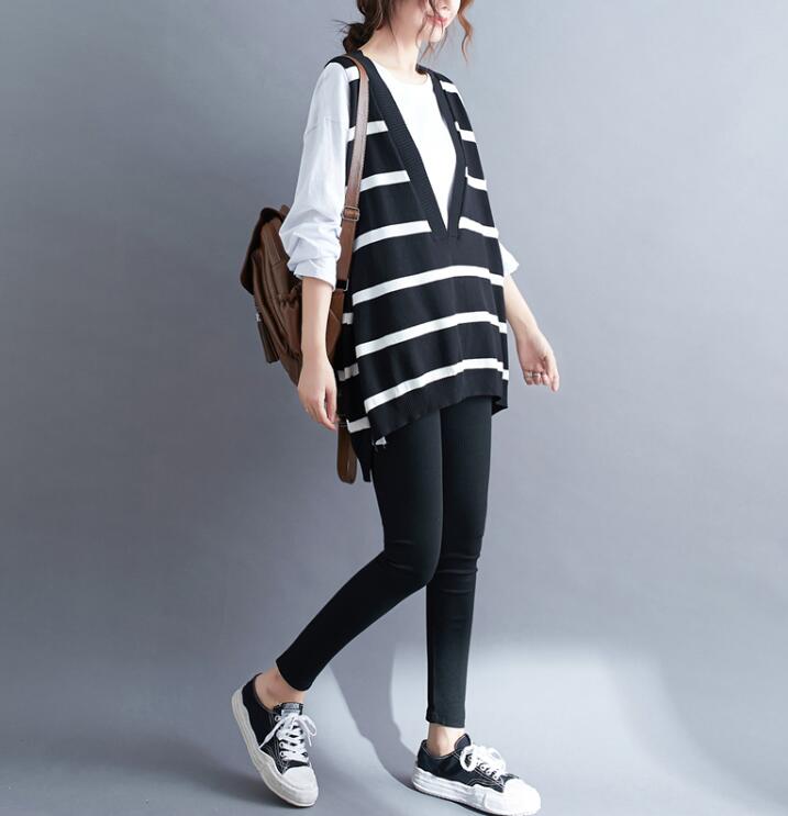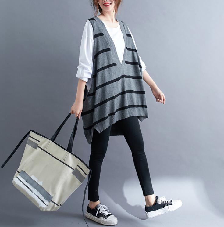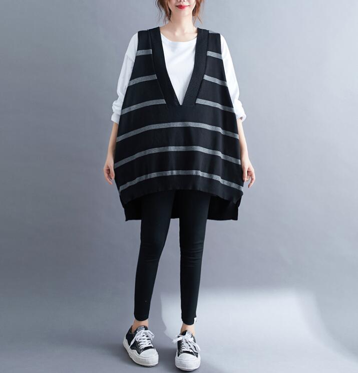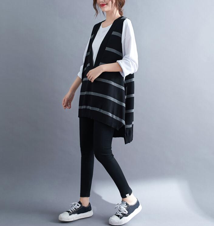 ニットベスト レディース前後差ボーダー