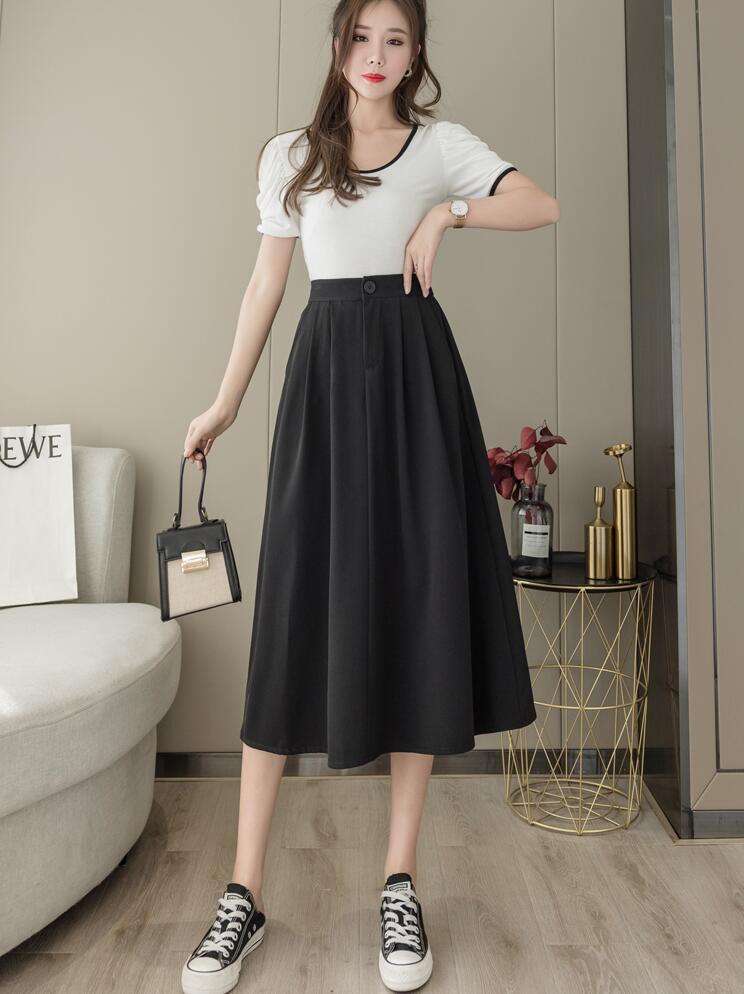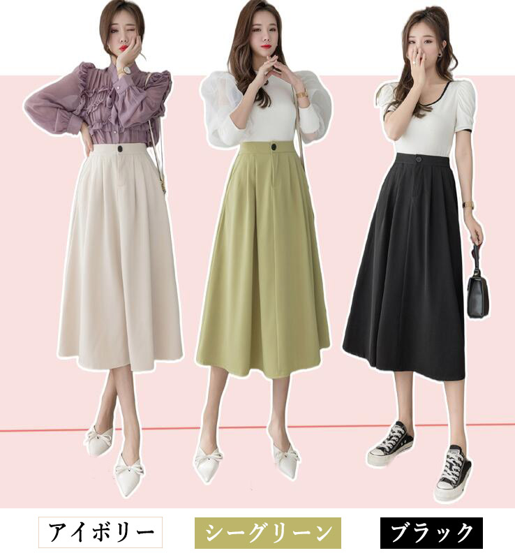 フレアスカートロング ミモレ丈スカート
