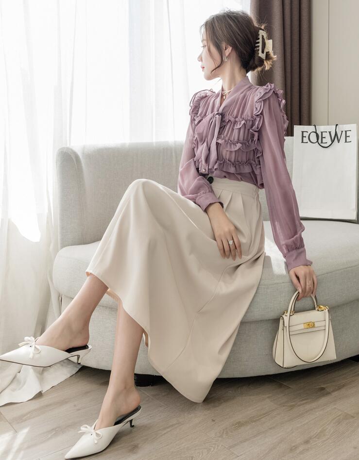 シフォンブラウス シアーブラウス ボリューム袖