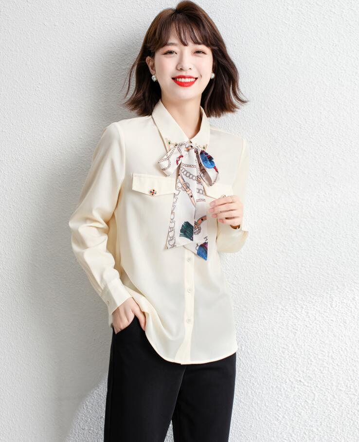 シアースリーブ ドッキングシャツ ボウタイシャツブラウス