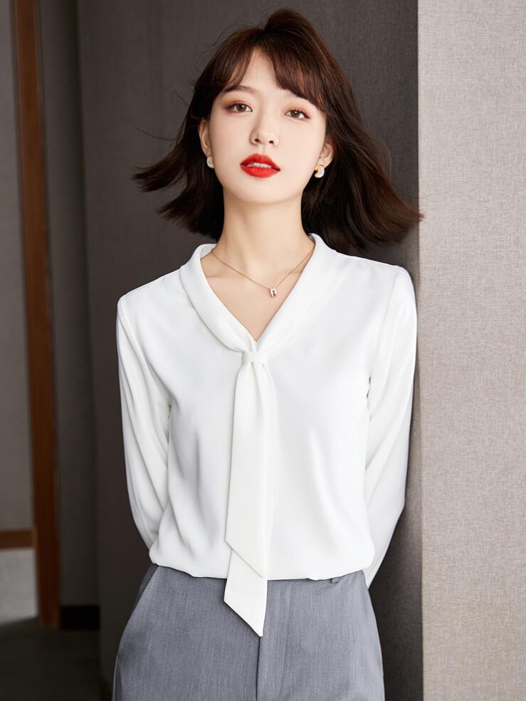 シアースリーブ ドッキングシャツ ボウタイシャツブラウス