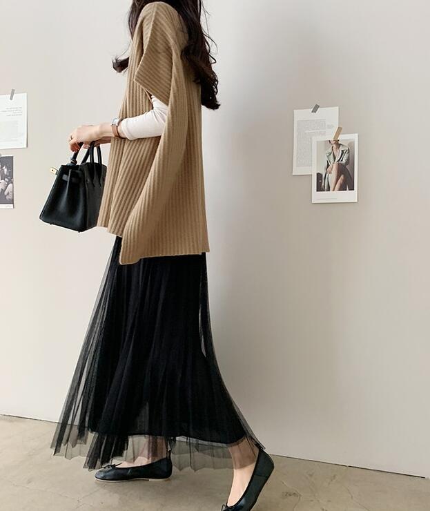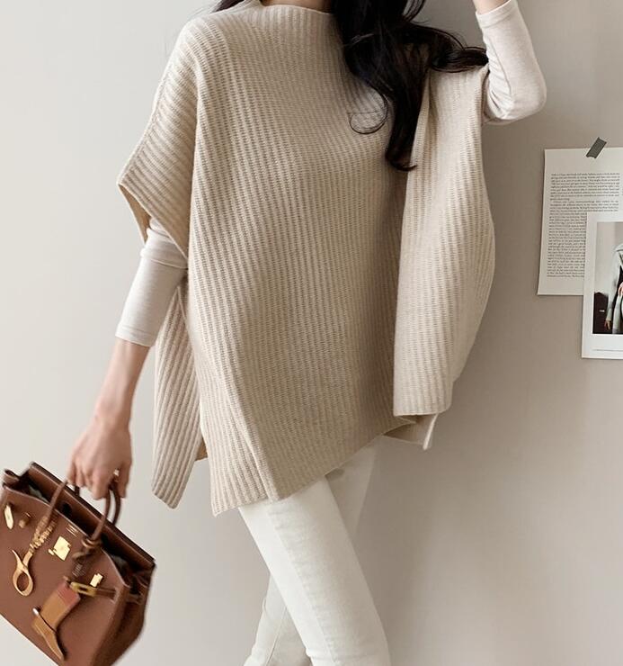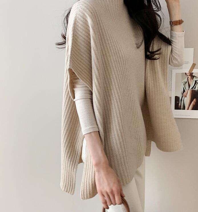 ポンチョニットベスト レディースドルマ