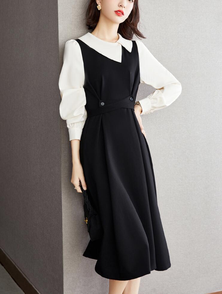 ワンピースレディース長袖切替ロングワン