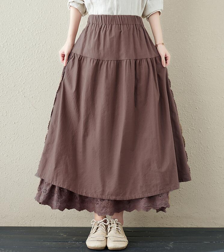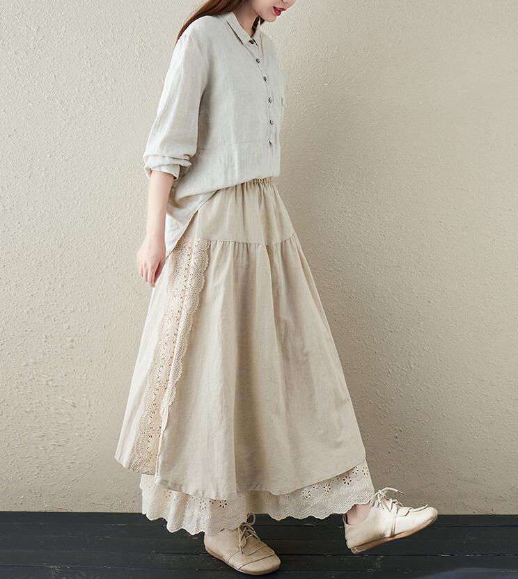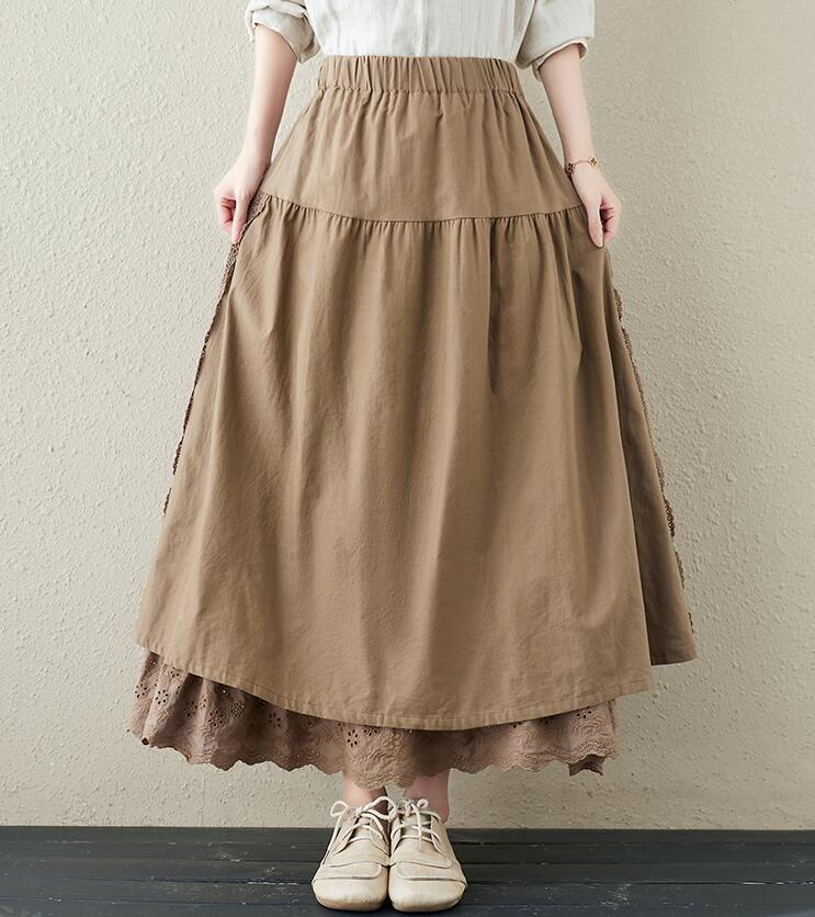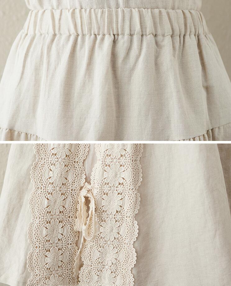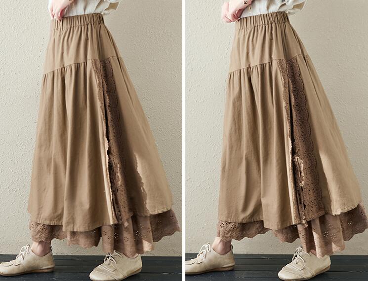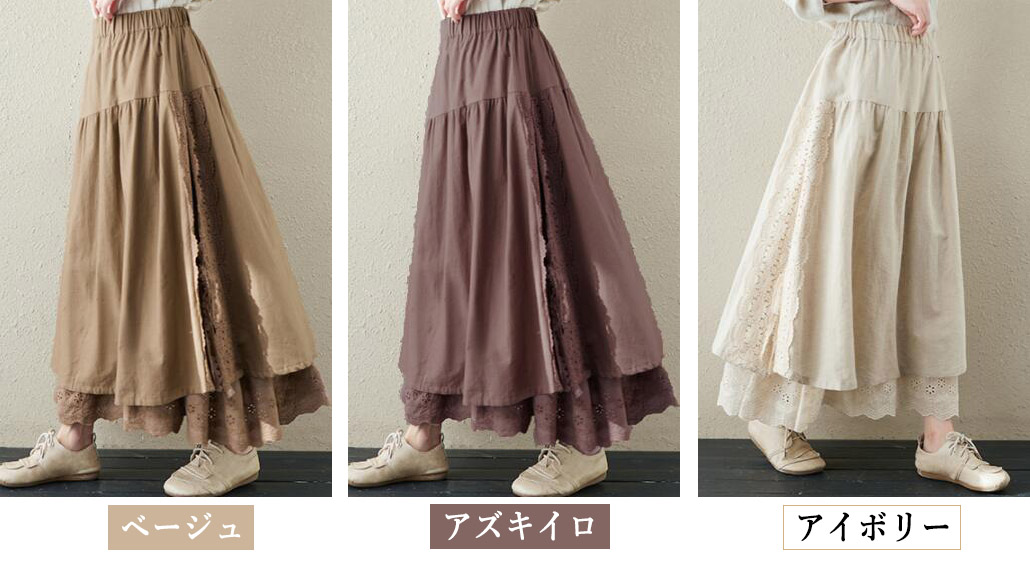 スカート刺繍レース 花柄リネン綿麻ギャ