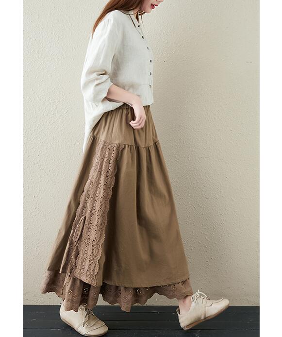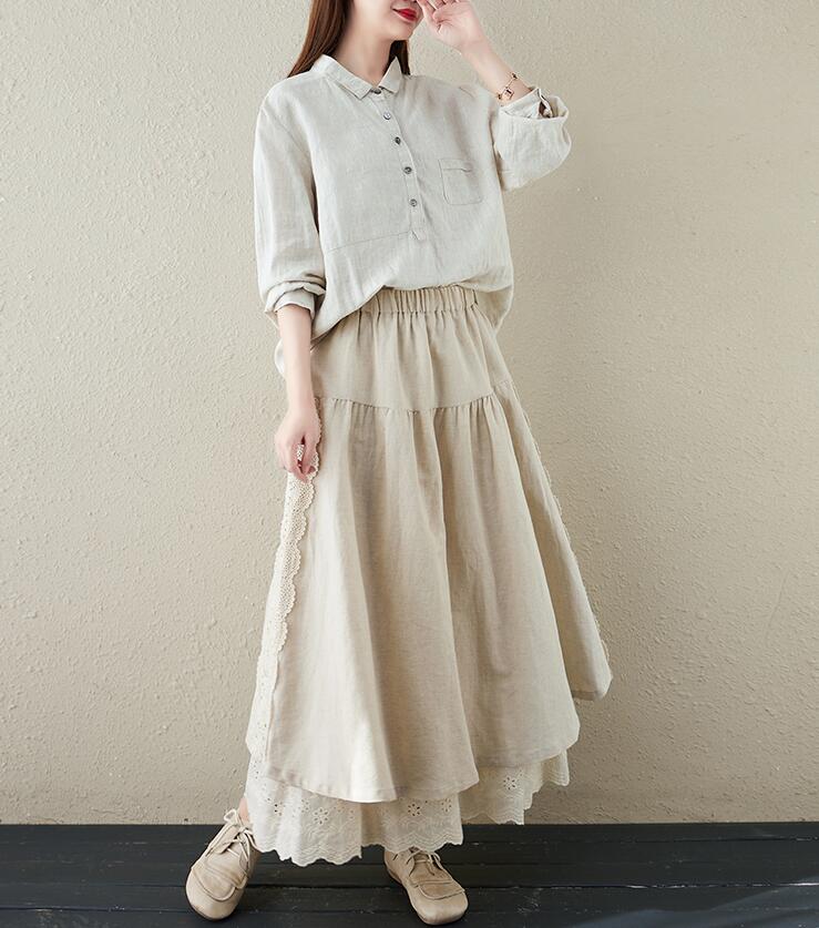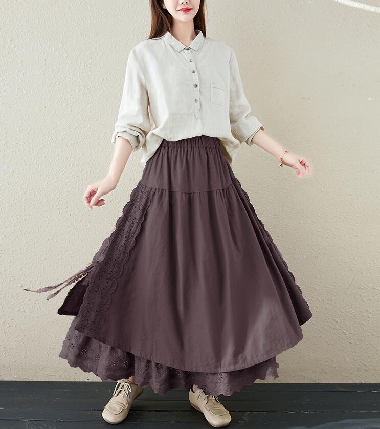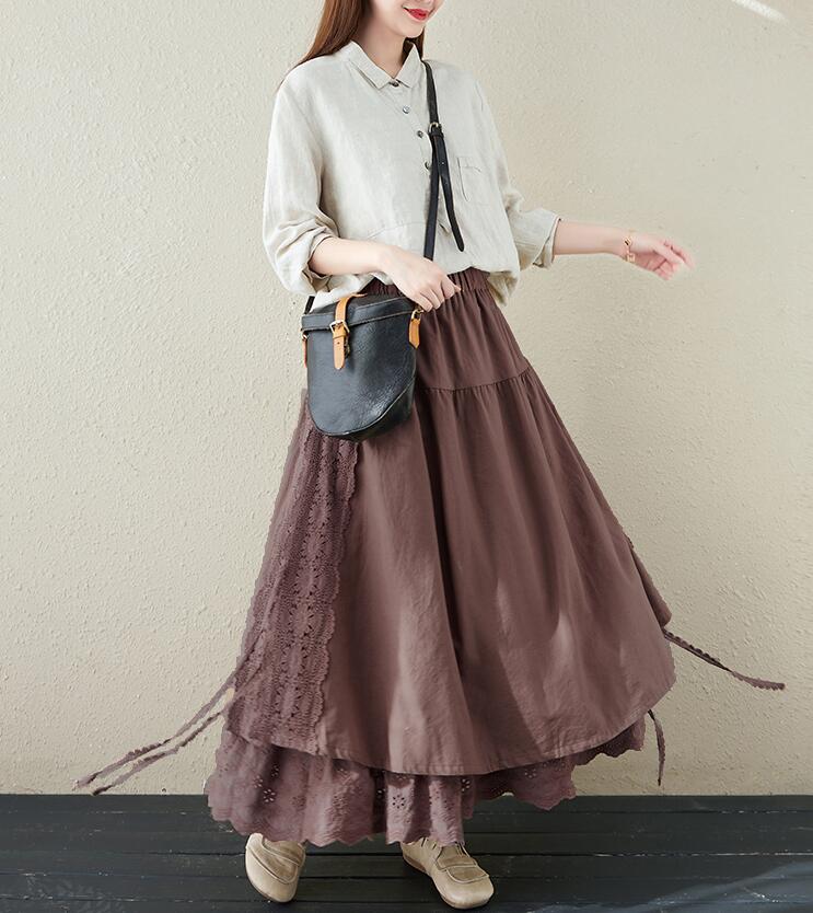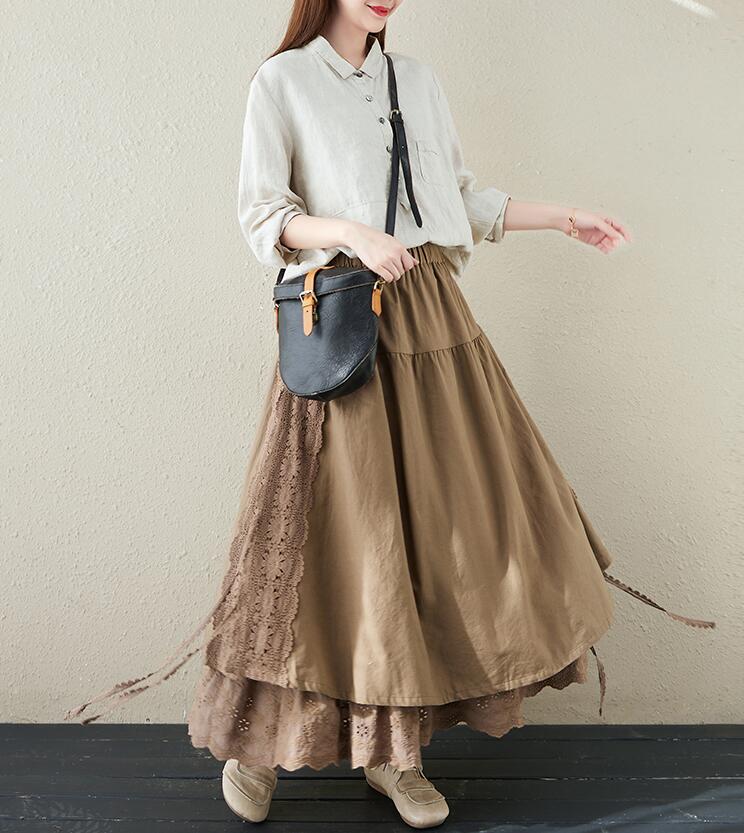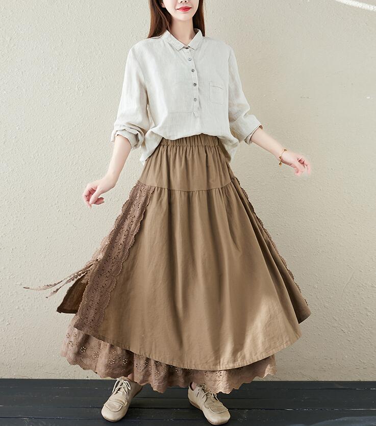 スカート刺繍レース 花柄リネン綿麻ギャ