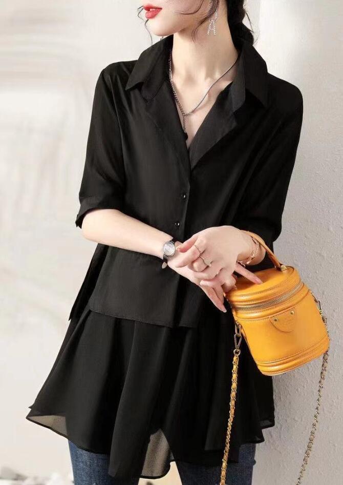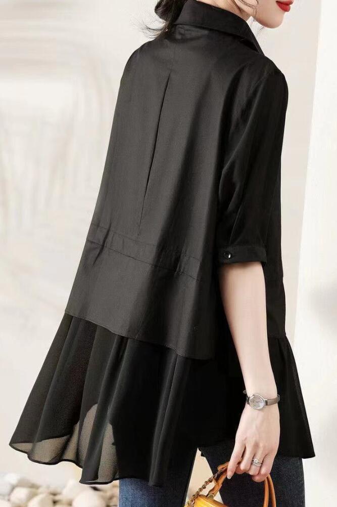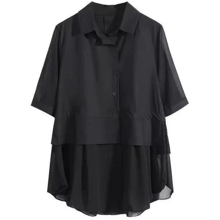 シアースリーブ ドッキングシャツ ボウタイシャツブラウス