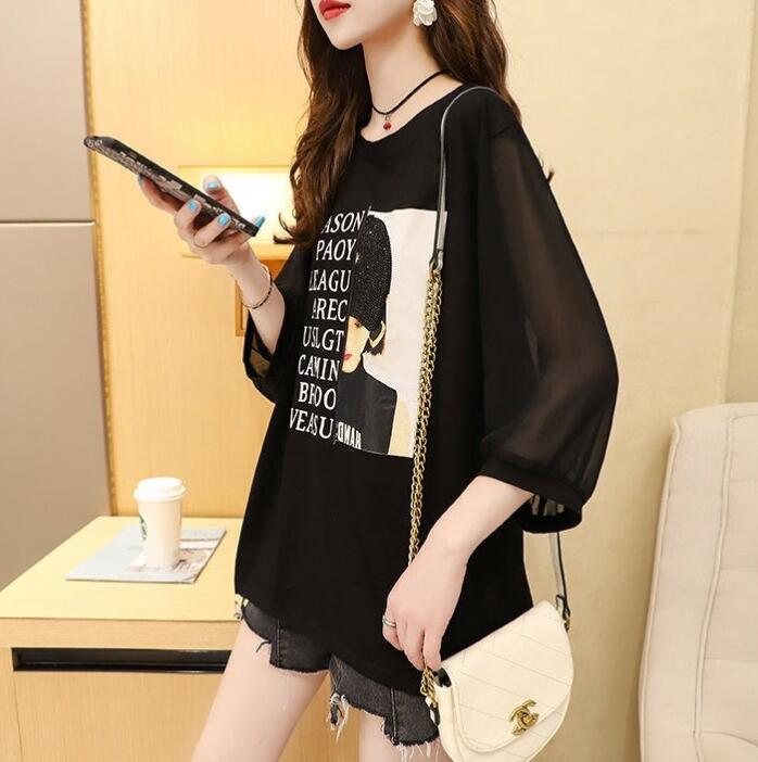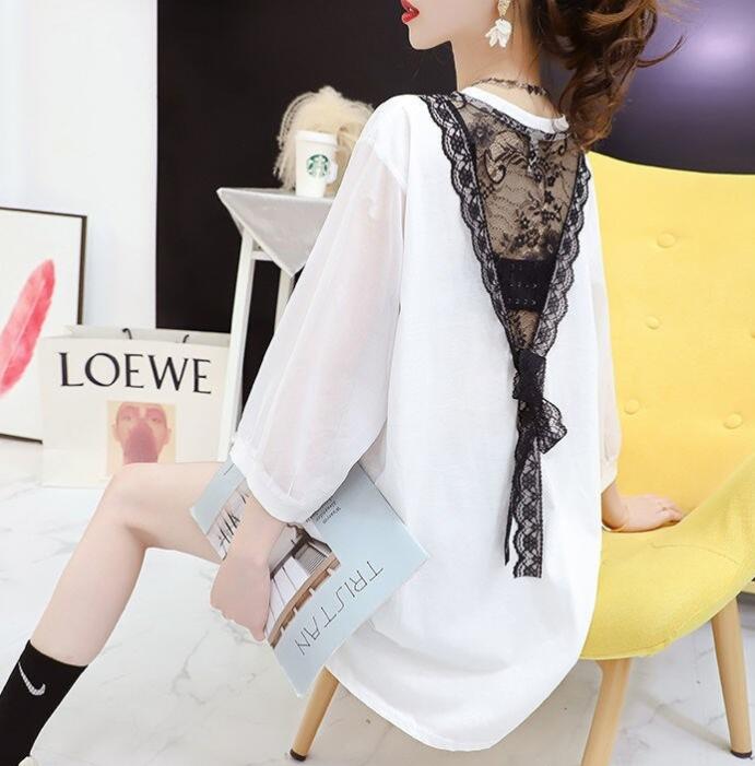 Tシャツレースレディース花柄刺繍プリン