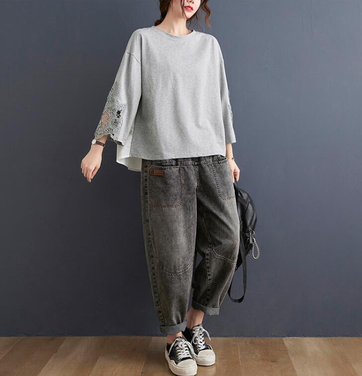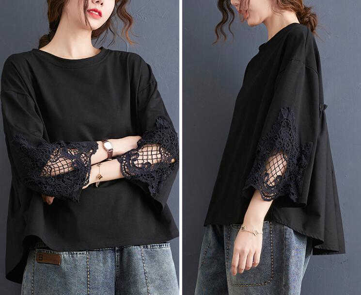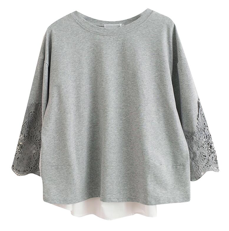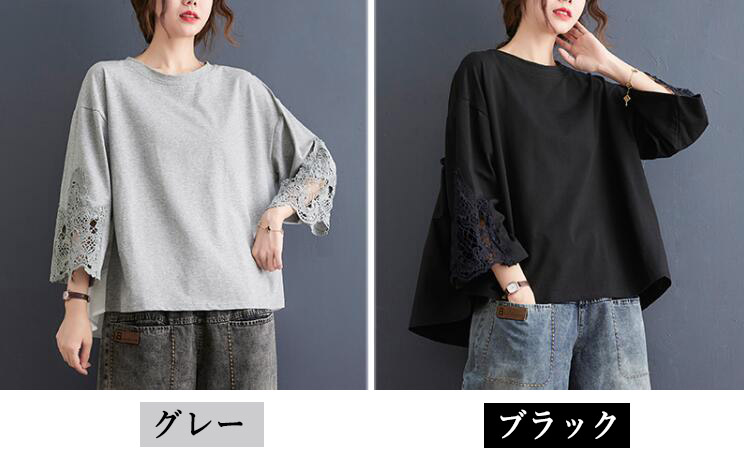 レース花柄刺繍Tシャツ レディース夏大