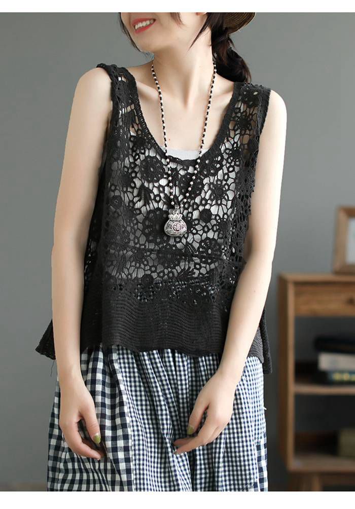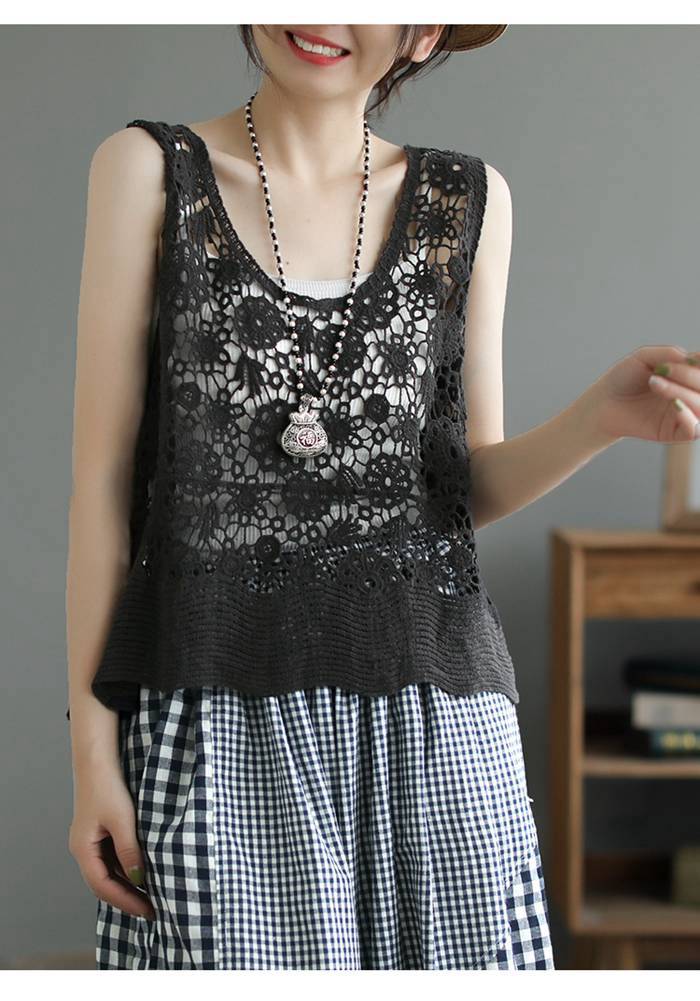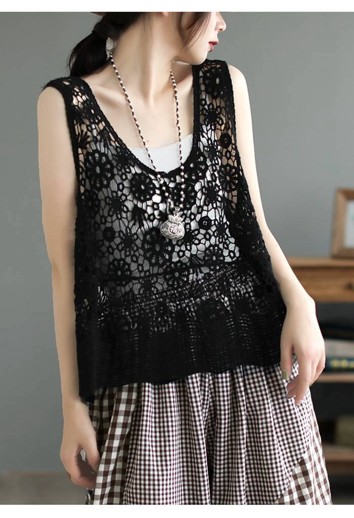 ベスト レディース 春夏 透かし編み