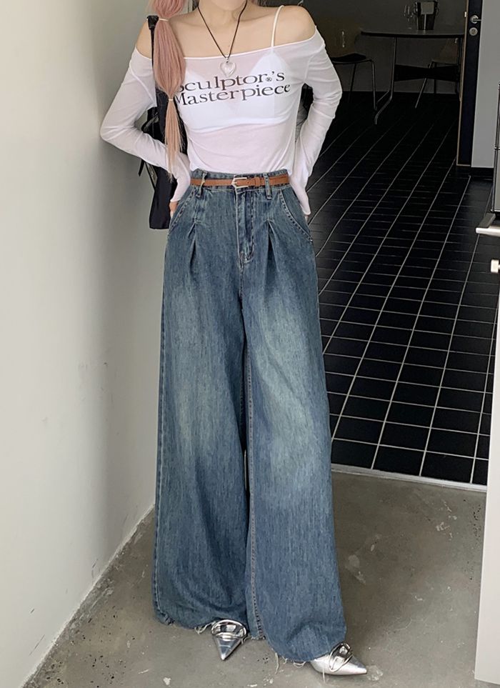 ワイドパンツ デニム レディース ベル