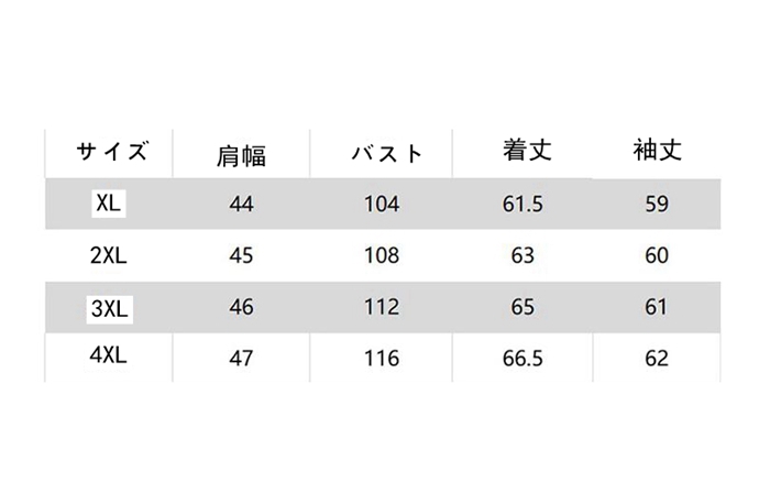 vertical-key: サイズXL(日本M対応) 2XL(日本L対応) 3XL(日本XL対応) 4XL (日本2XL対応)