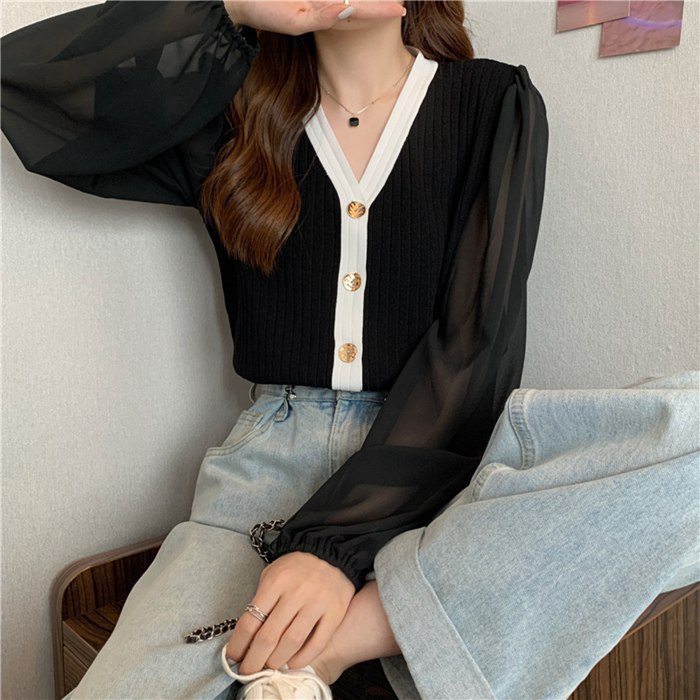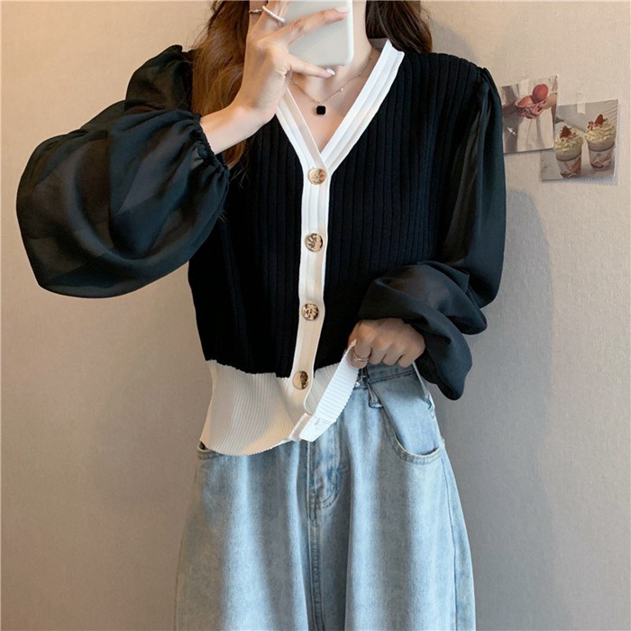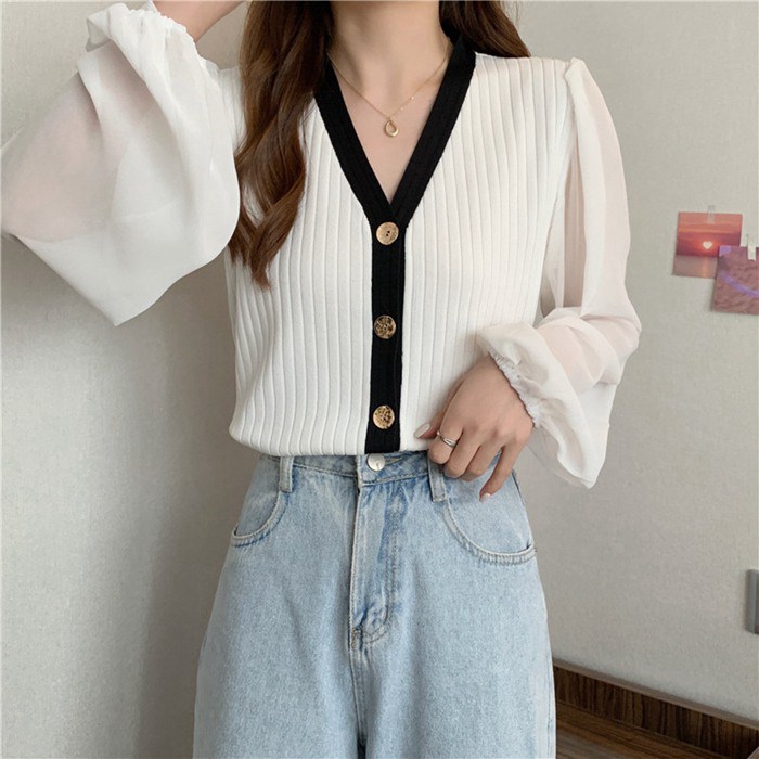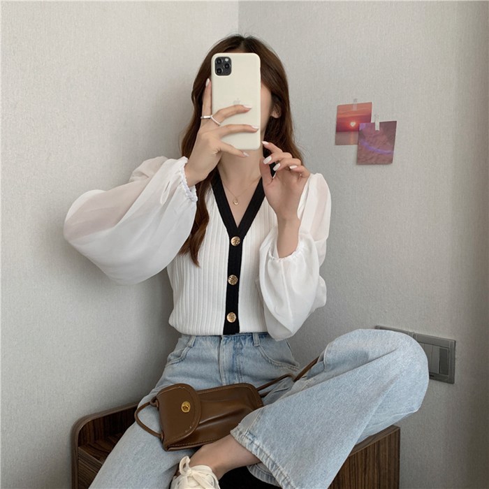 シアースリーブ ドッキングシャツ ボウタイシャツブラウス