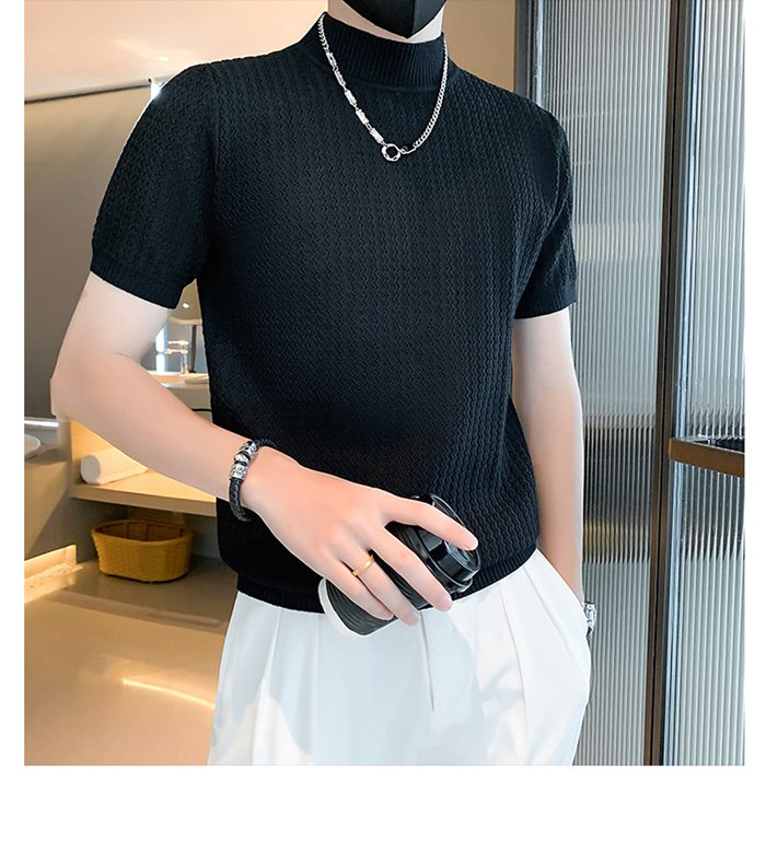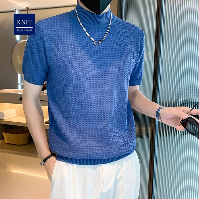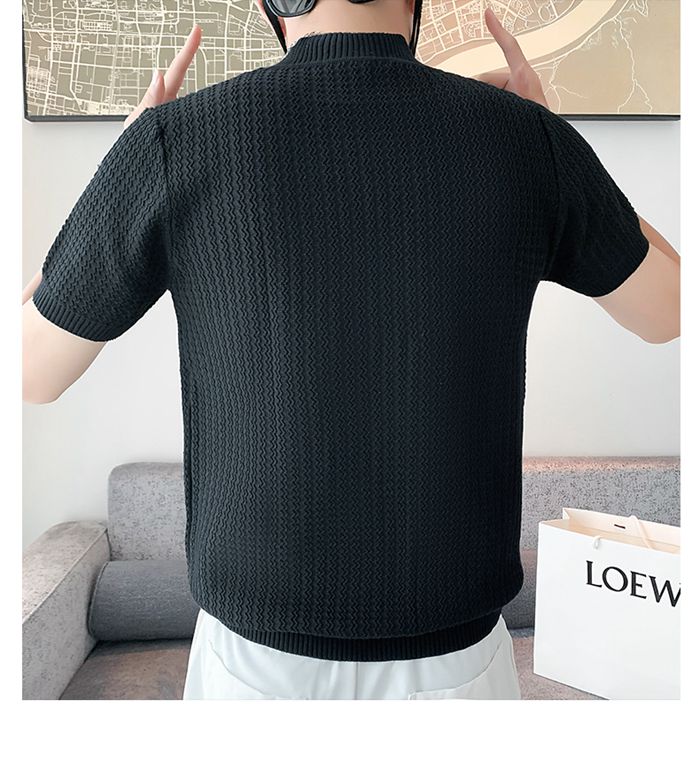 サマーニット メンズ 半袖 モックネック 配色 無地 薄手 トップス デザインメンズファッション トップス Tシャツ カットソー