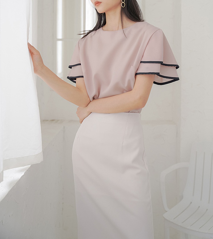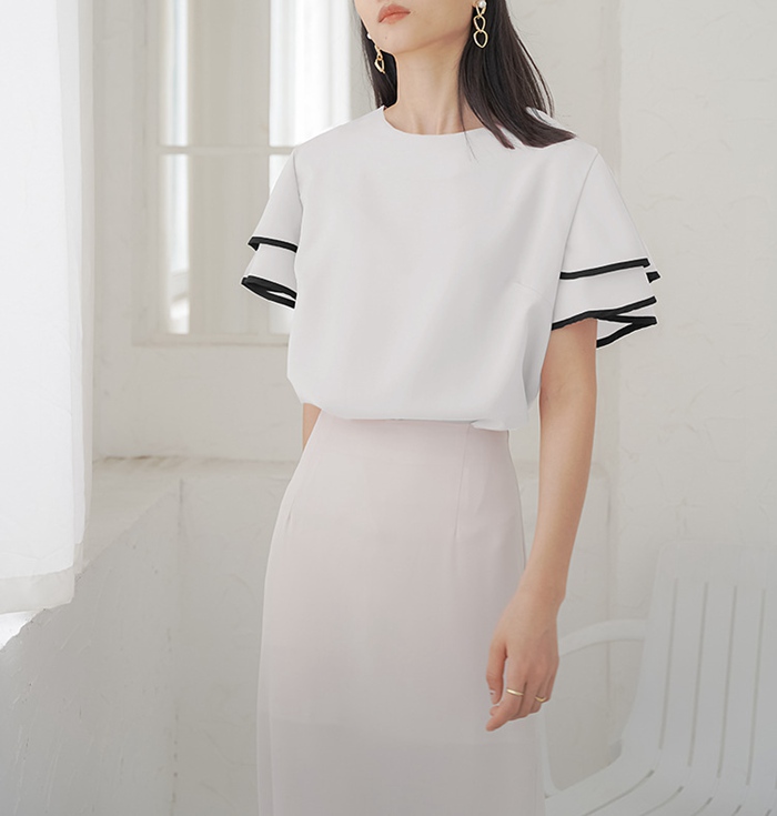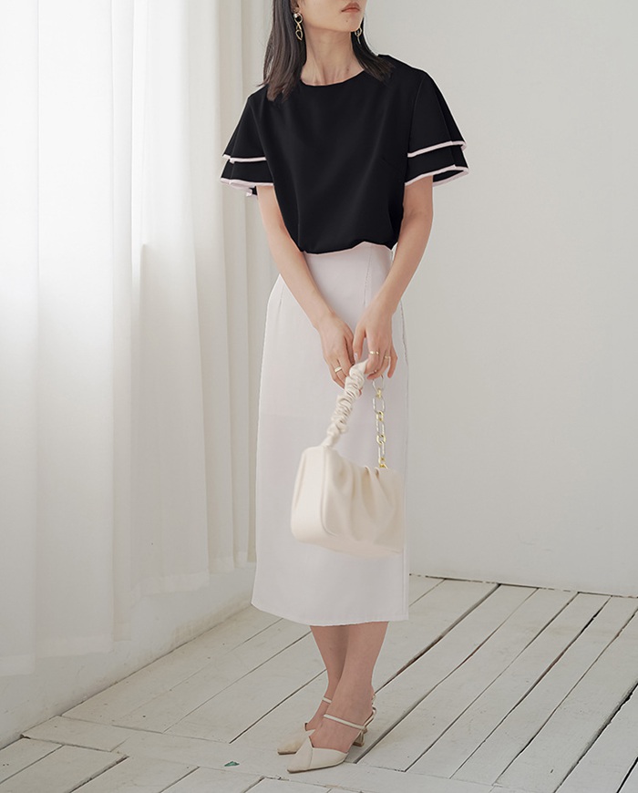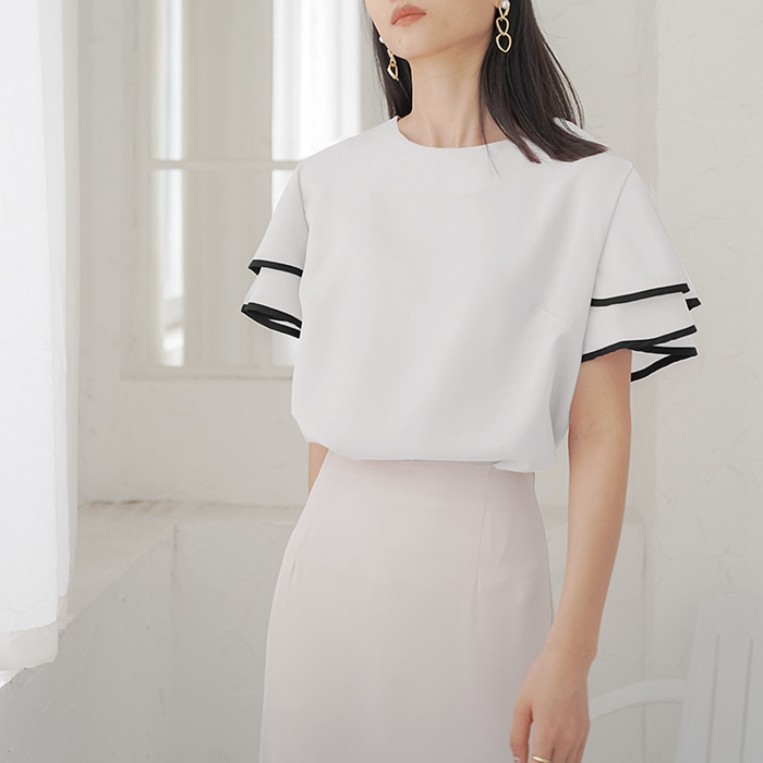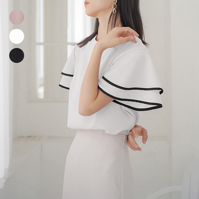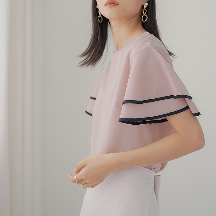シフォンブラウス フリル袖 半袖 この