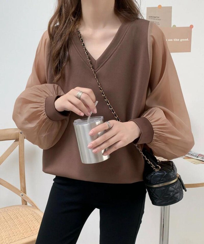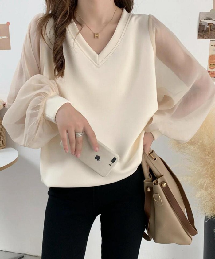 シフォンブラウス シアーブラウス ボリューム袖
