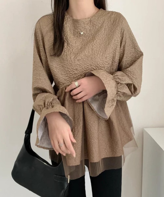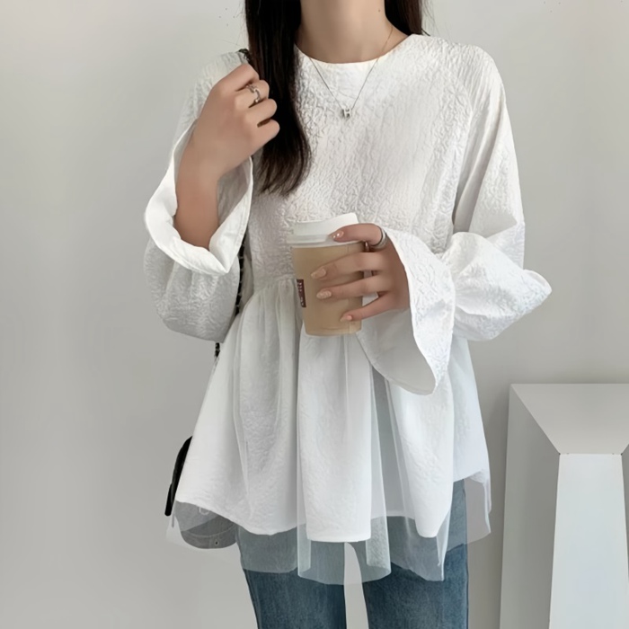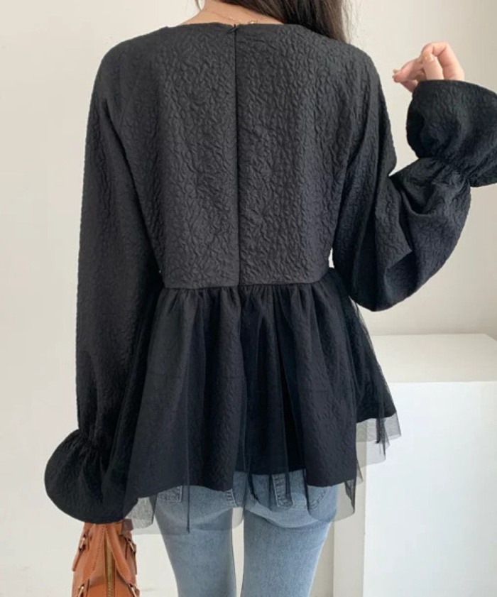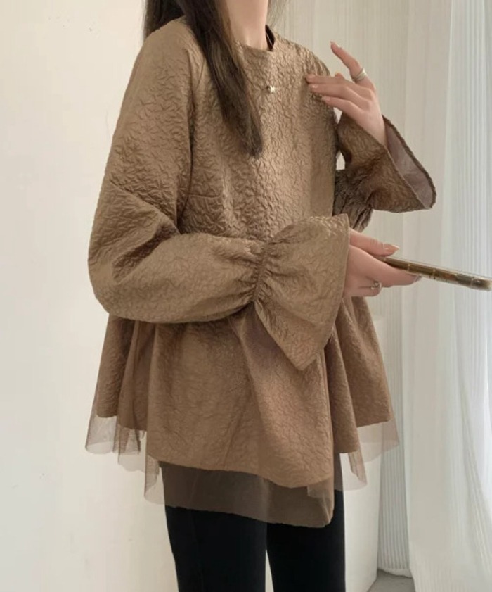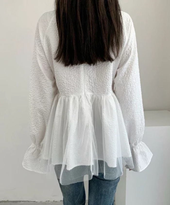 シアースリーブ ドッキングシャツ ボウタイシャツブラウス