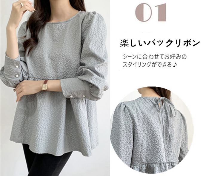 シアースリーブ ドッキングシャツ ボウタイシャツブラウス