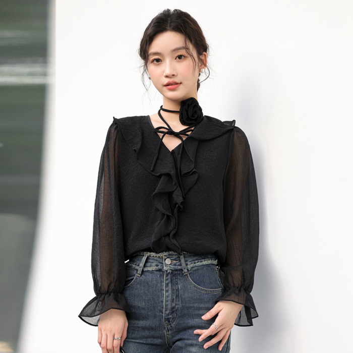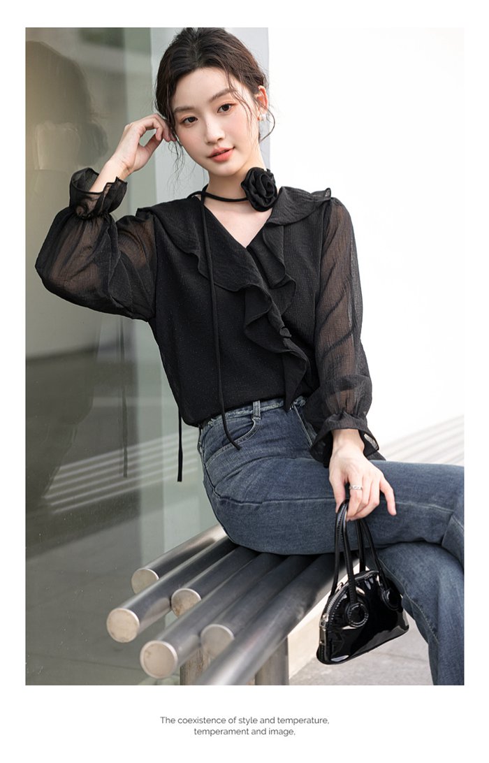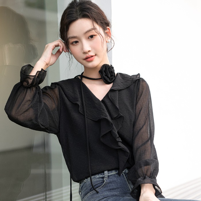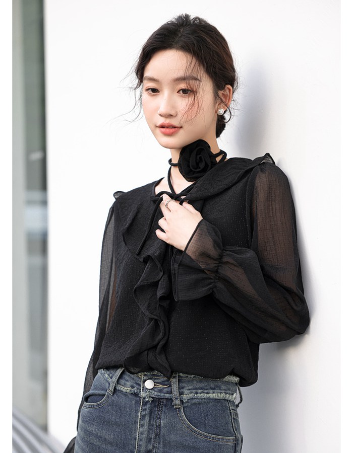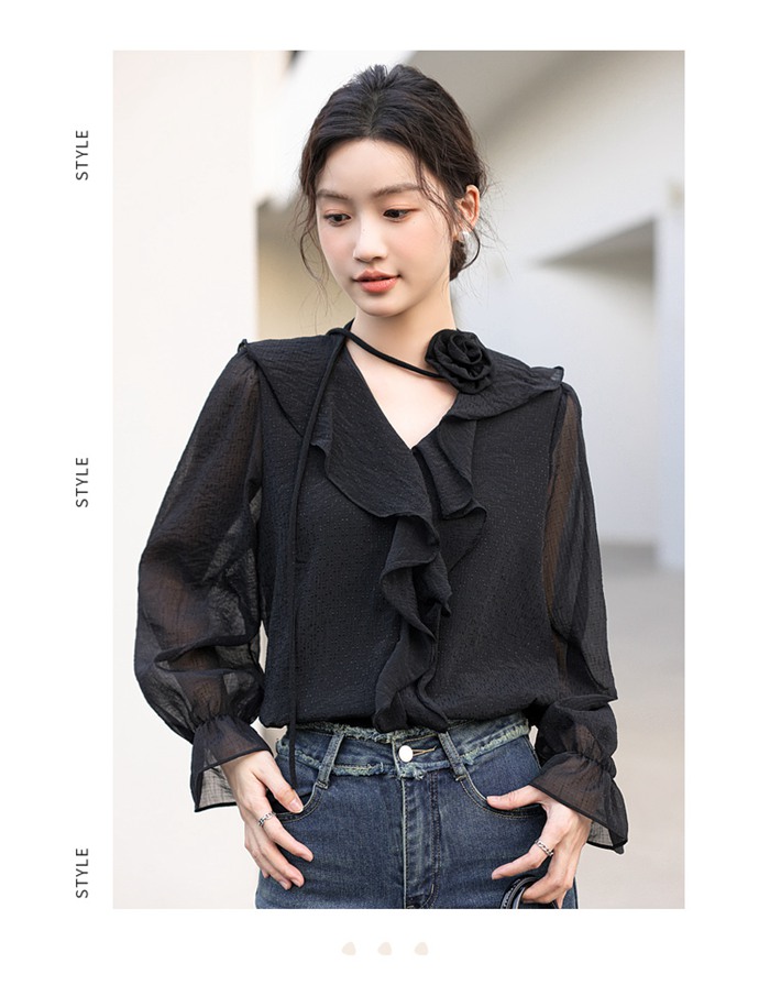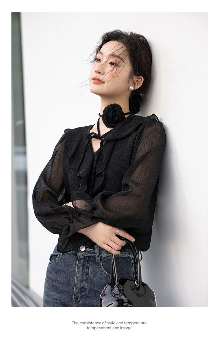 シアースリーブ ドッキングシャツ ボウタイシャツブラウス