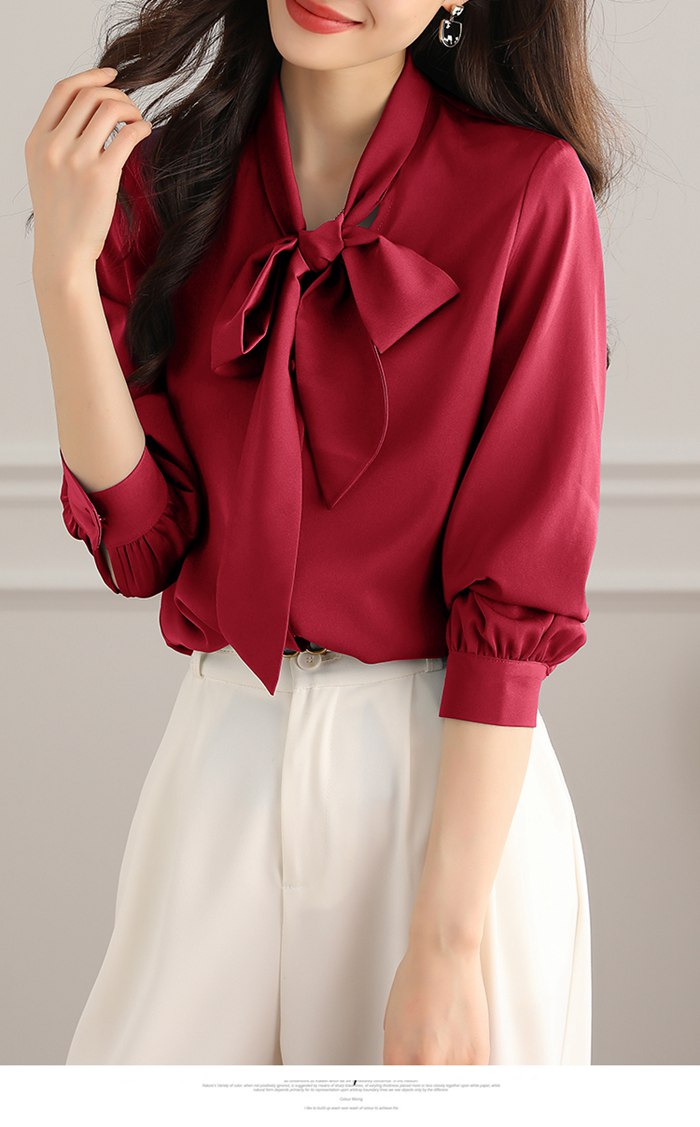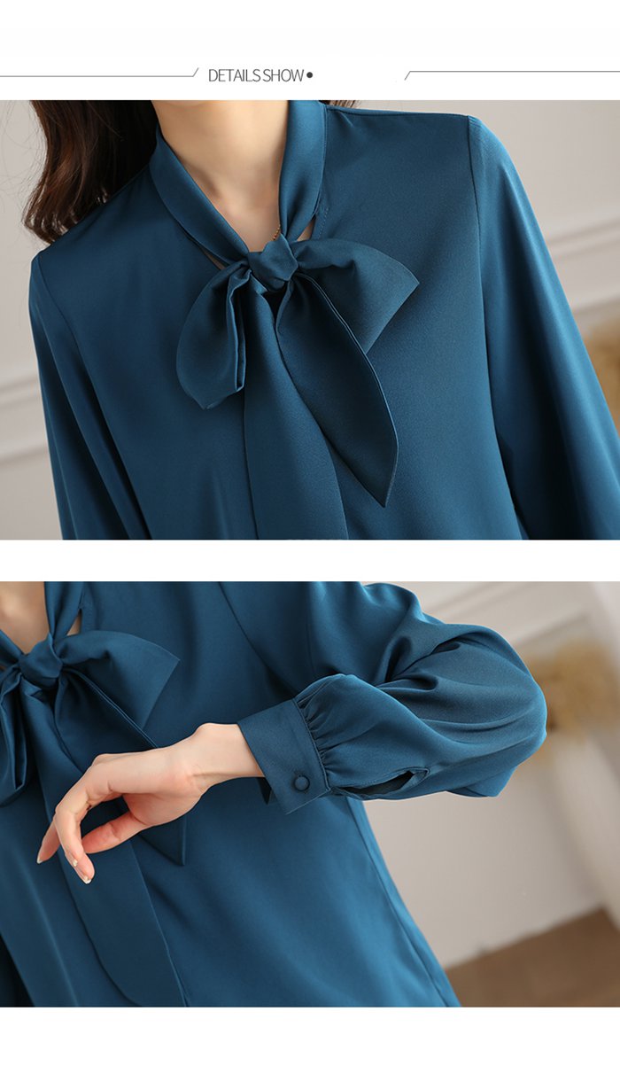 シアースリーブ ドッキングシャツ ボウタイシャツブラウス