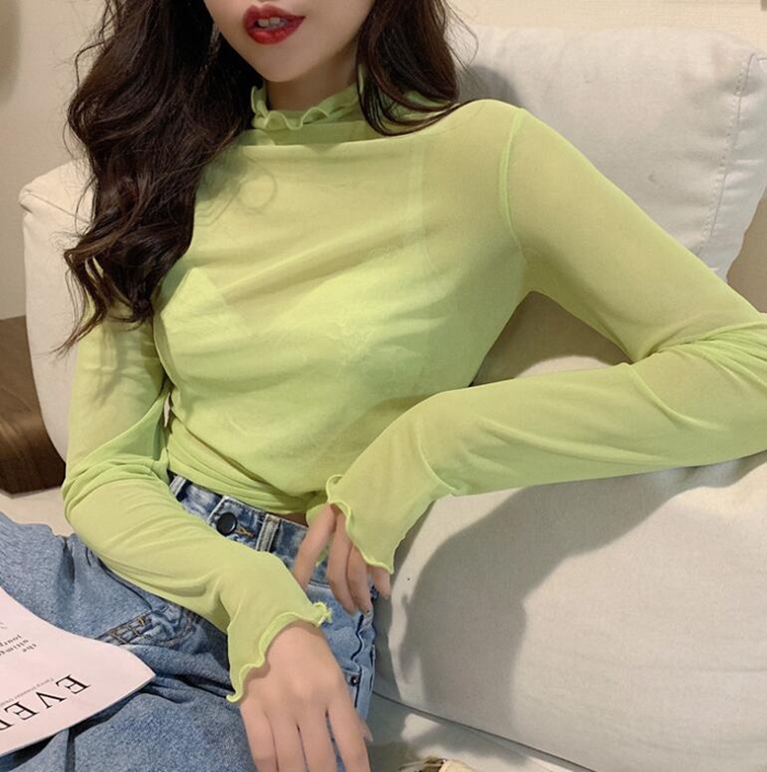 シアートップス チュールトップス レディース 長袖 ハイネック メロウ 重ね着 インナー 透け感 レイヤード 冷房 紫外線対策 薄手 きれいめ 着る日焼け止め コーデ ファッション