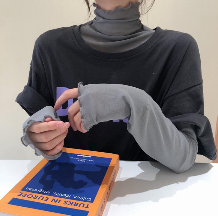 柔らかなチュール素材を使用し、首元はハイネックでUV対策としても露出度調整にも◎ 伸縮性があり、締め付けのない程良いフィット感。