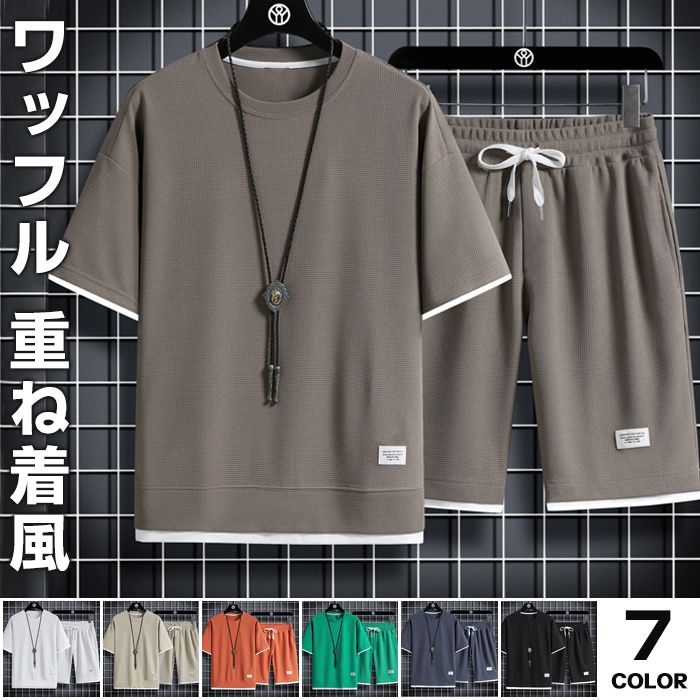 上下セット セットアップ ワッフル 夏