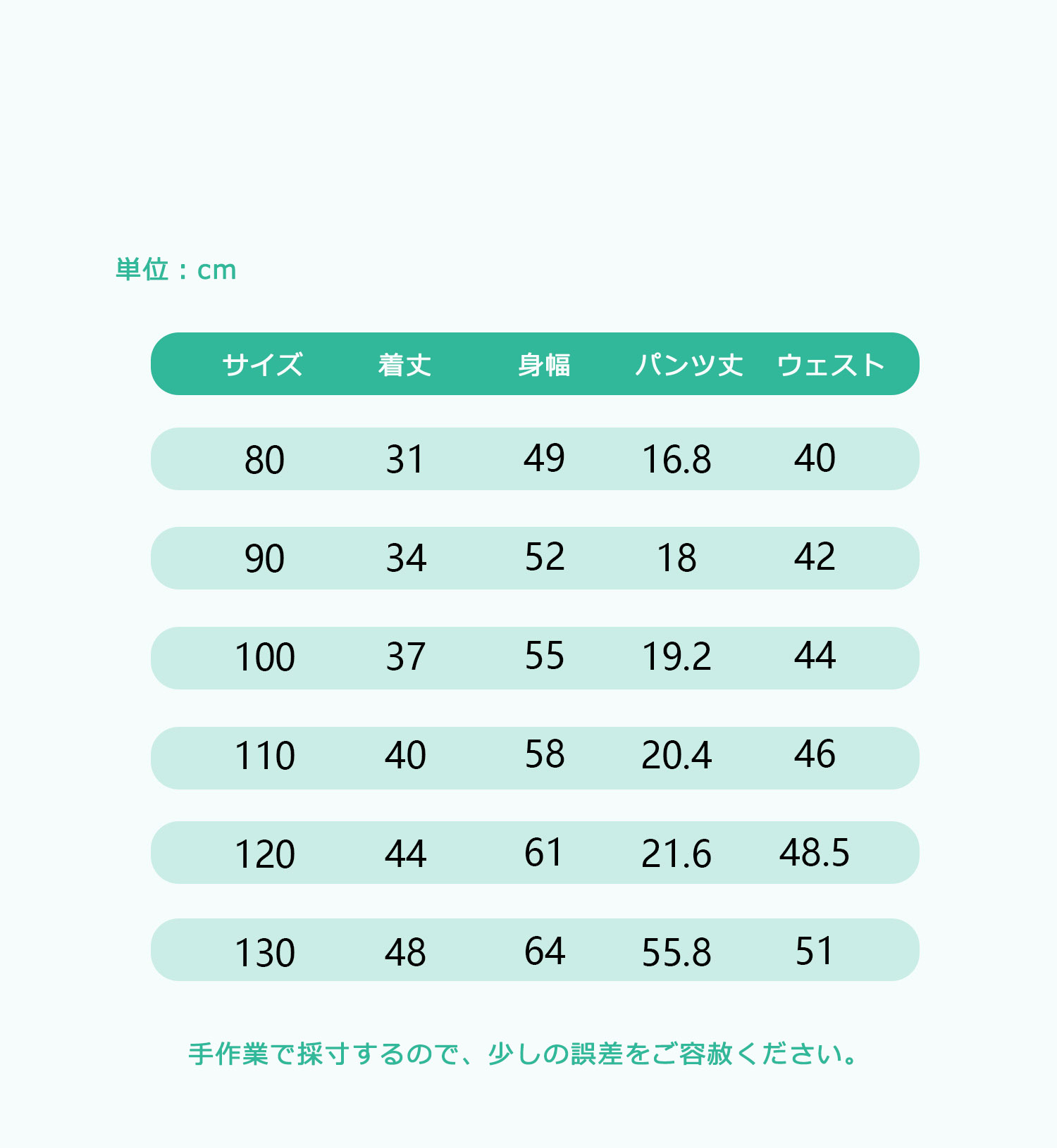 サイズ: 80cm 90cm 100cm 110cm 120cm 130cm