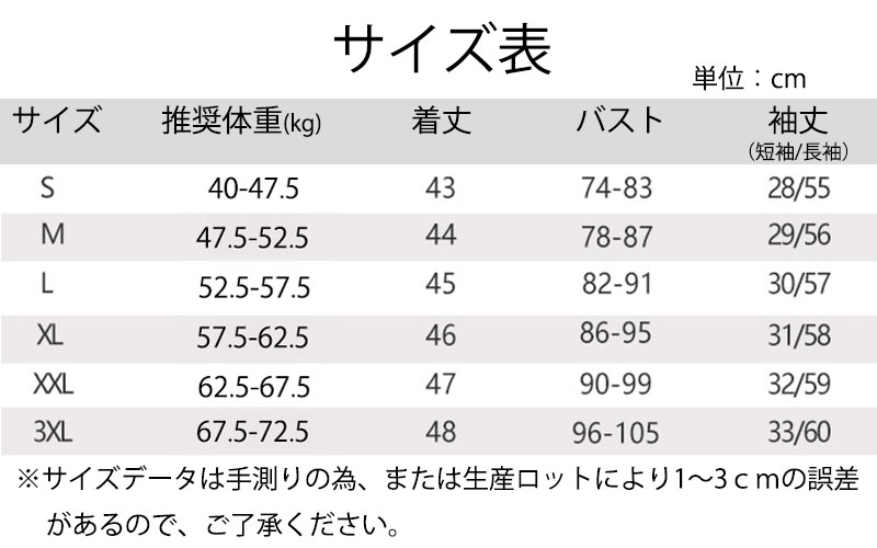 horizontal-key: S M L XL XXL 3XL