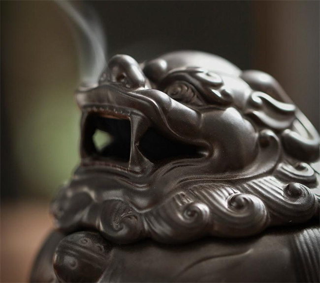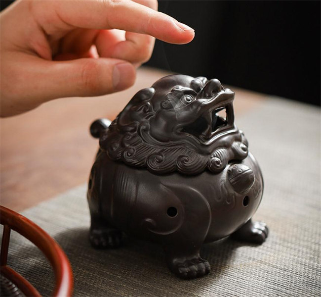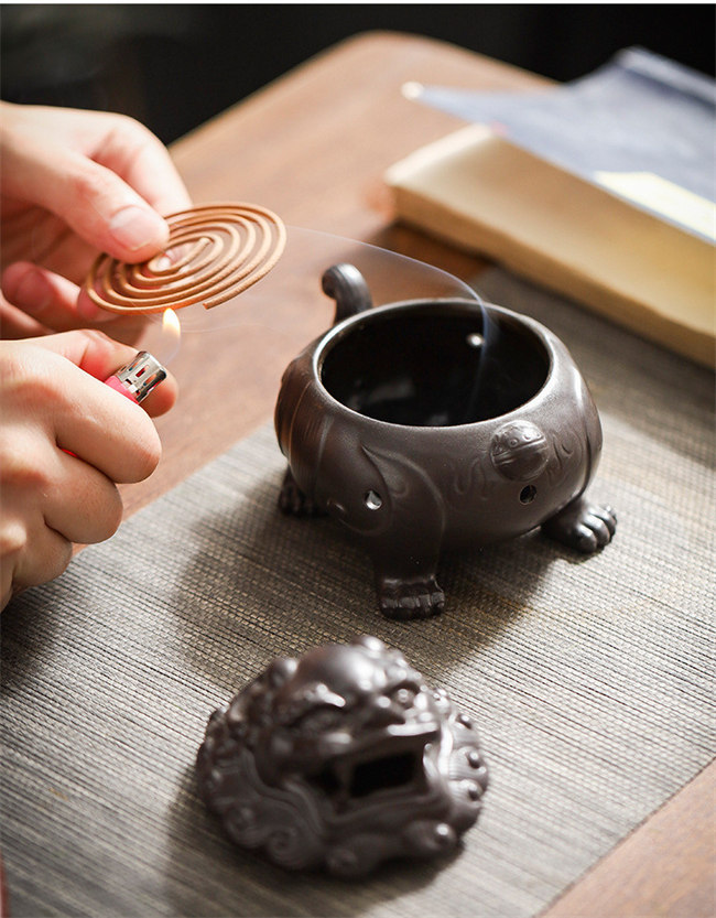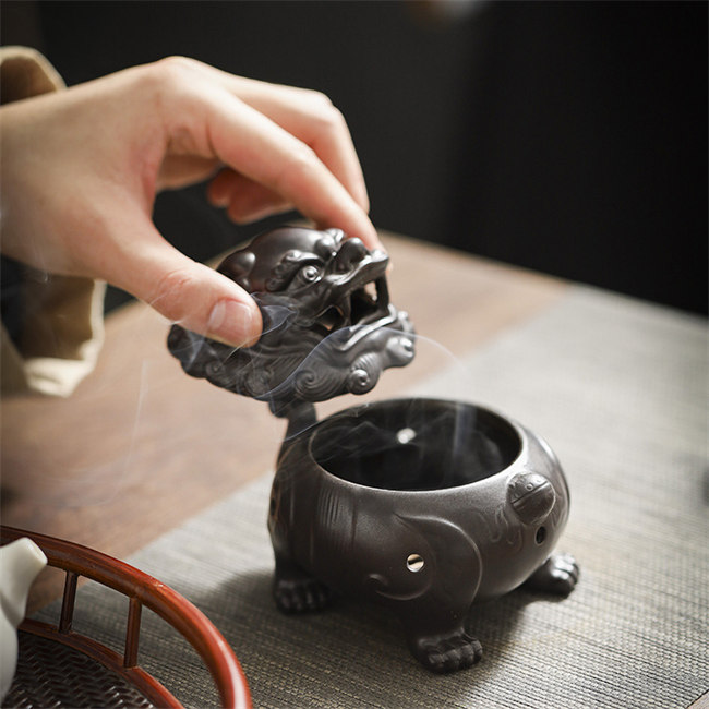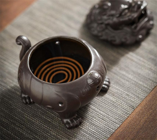 貔貅セラミック横置き 蓋付 線香皿 渦