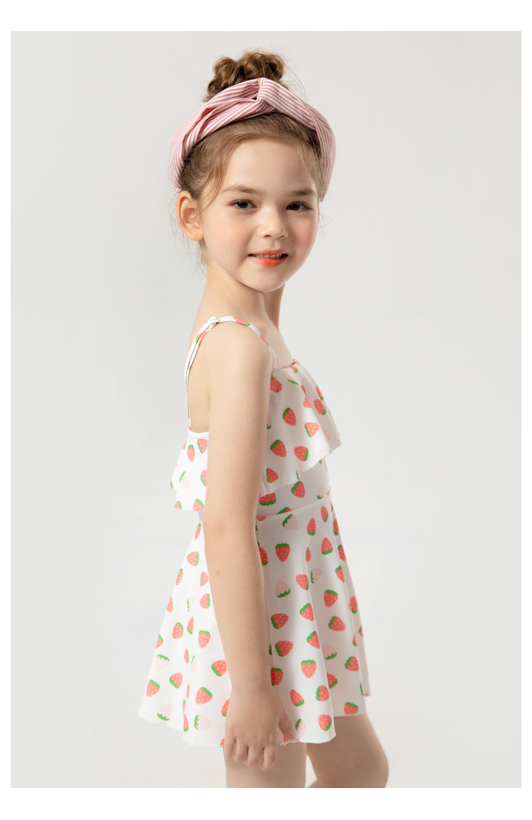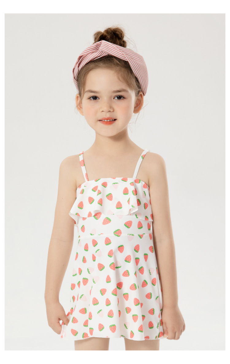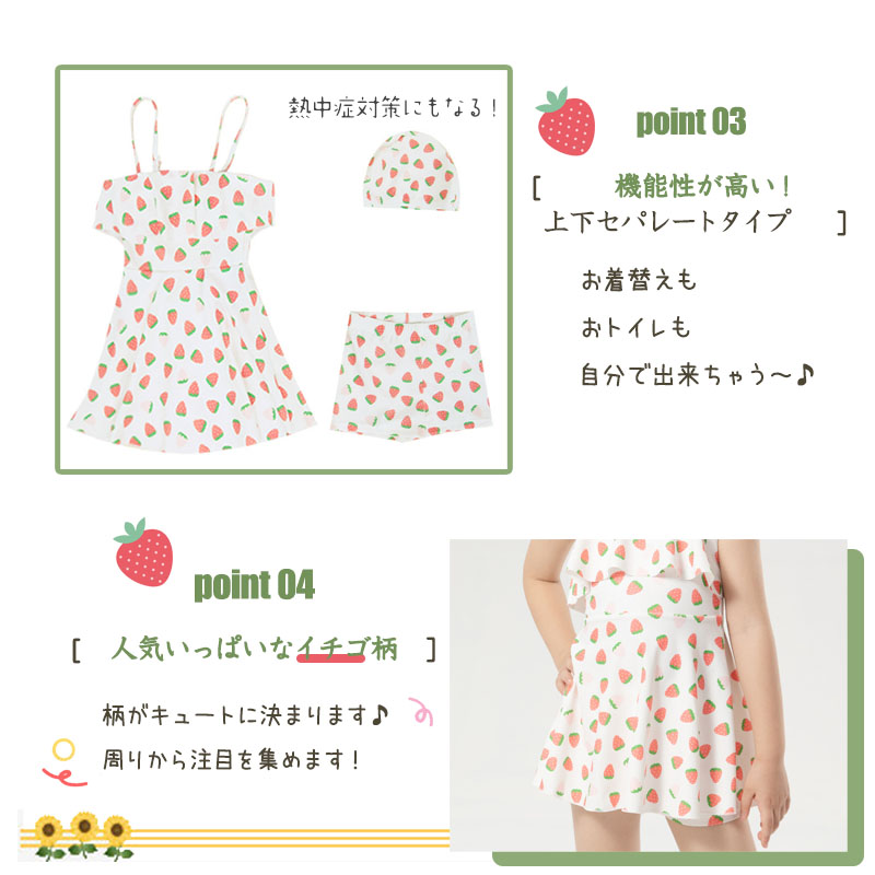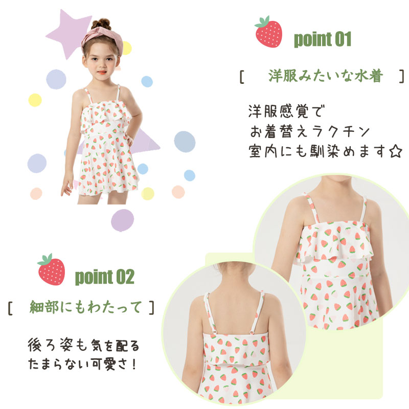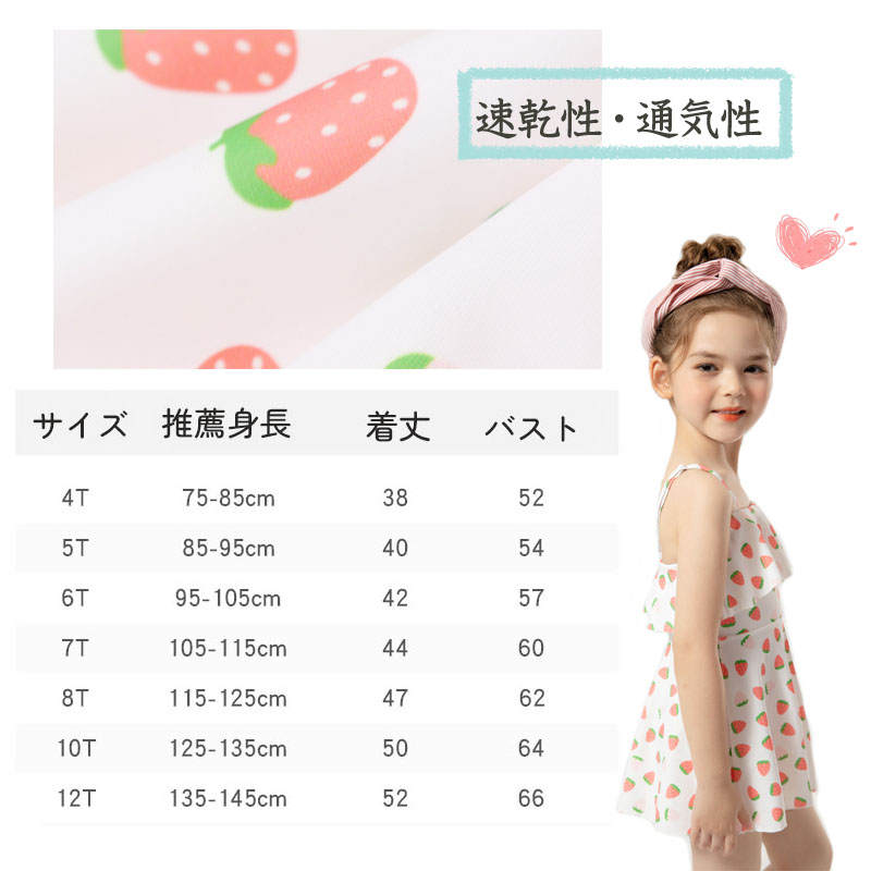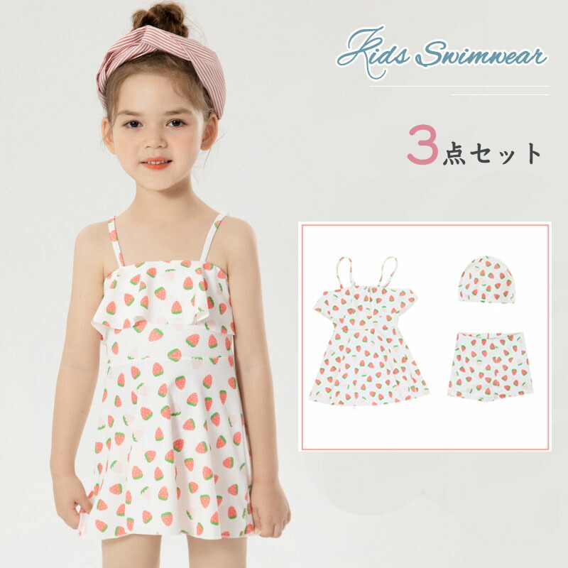 子供水着 キャップ付き ワンピース 上下セット水着 イチゴ サスペンダー 子ども ジュニア 水着 紫外線対策 女の子 ガールズ ジュニア キッズ 子供 キッズ 水着 子ども用 水着 スクール水着 みず