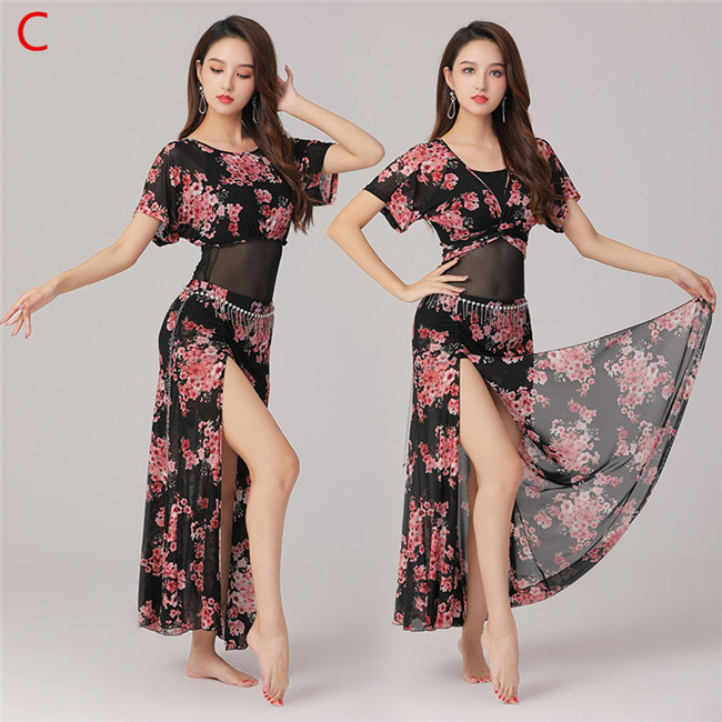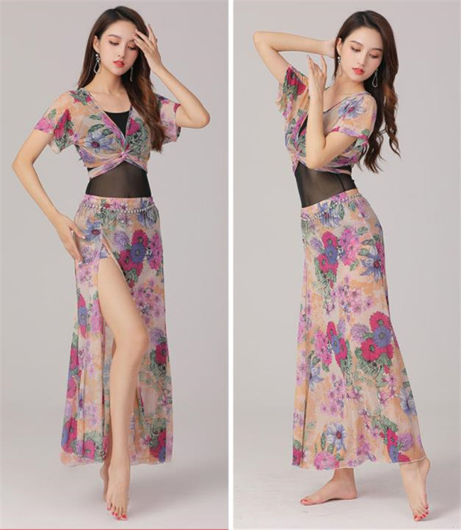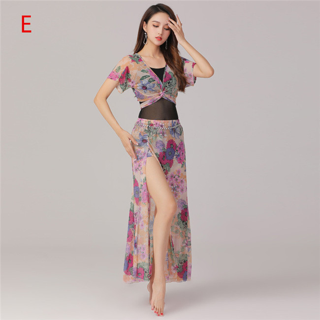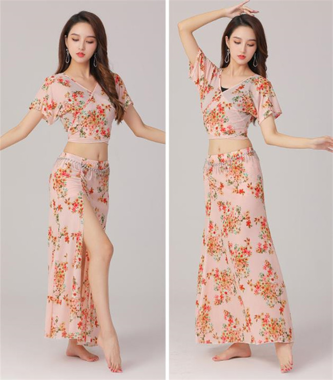 5色入荷上下セットベリーダンス衣装 舞台服演出用レッスン着 ステージ衣装、練習用レッスントップス+スカート 2点セット ステージ衣装練習用 ベリーダンス ステージ衣装イベント ショートスカート タッセ